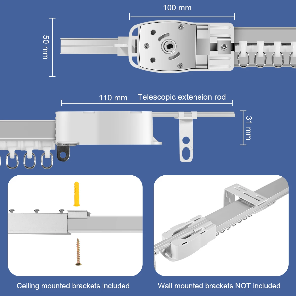 2. If the buyer does not leave a message or communicate with the seller, we default to send the ceiling bracket, straight track, and the middle opening. In addition, the wall bracket is not included and needs to be purchased separately.