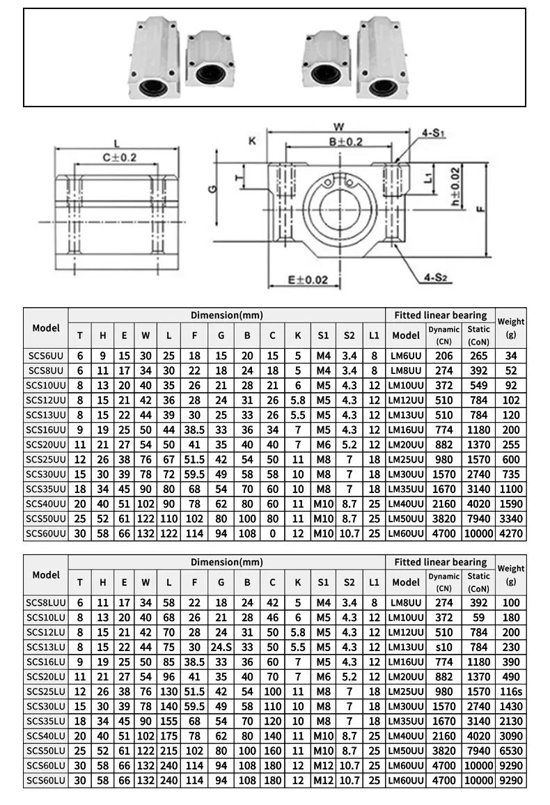 4PCS SCS10UU