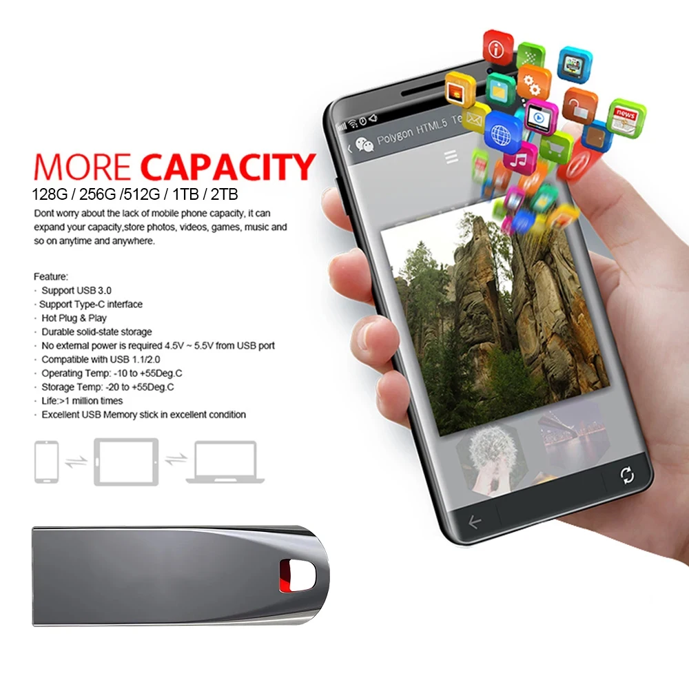 - Large Capacity USB Memory Stick: For Smartphone Laptop Type c 2 In 1 OTG U Disk