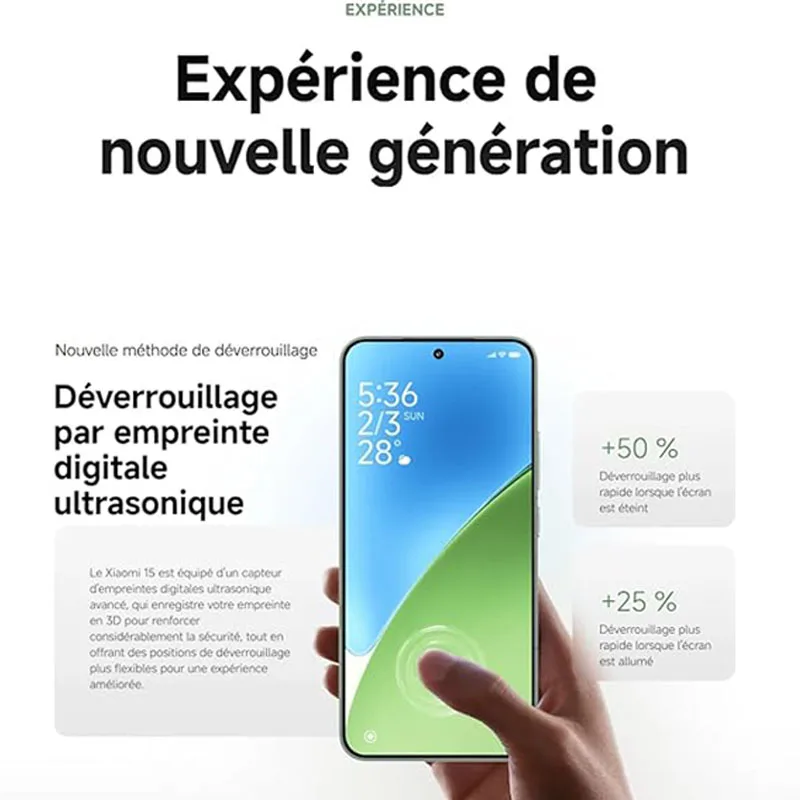 Xiaomi Mi 15 is the first to feature an under-screen ultrasonic fingerprint scanner. The unlocking position is very convenient and the unlocking speed is very fast. It is not dazzling when unlocking at night and it is worry-free to unlock with wet or dirty hands.