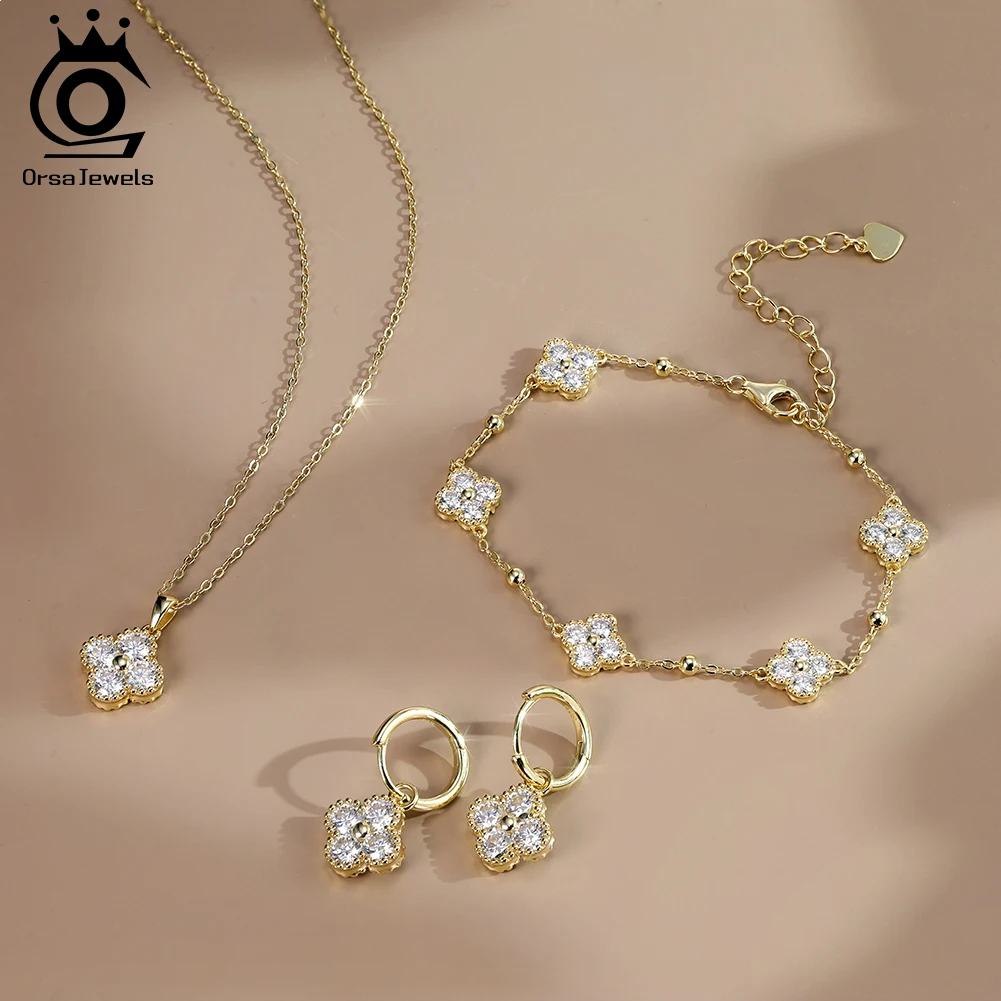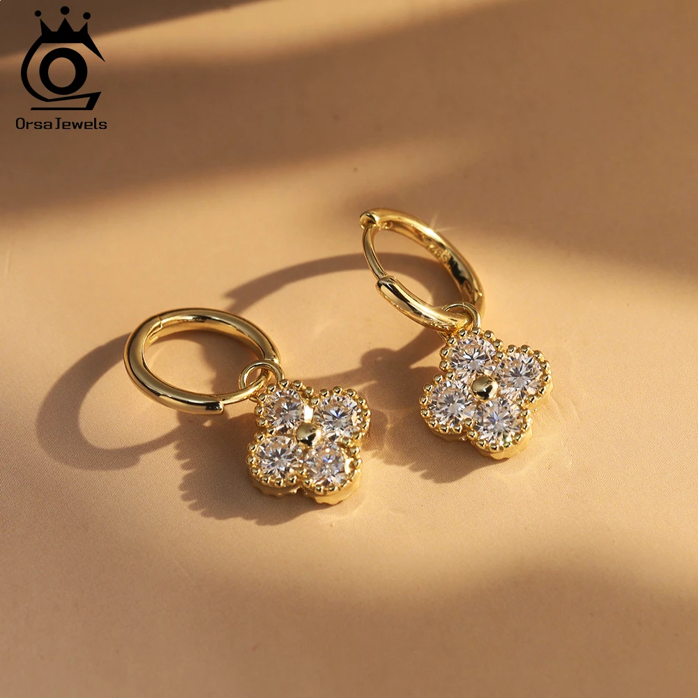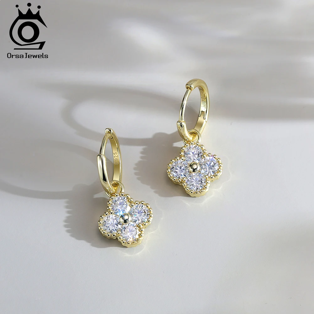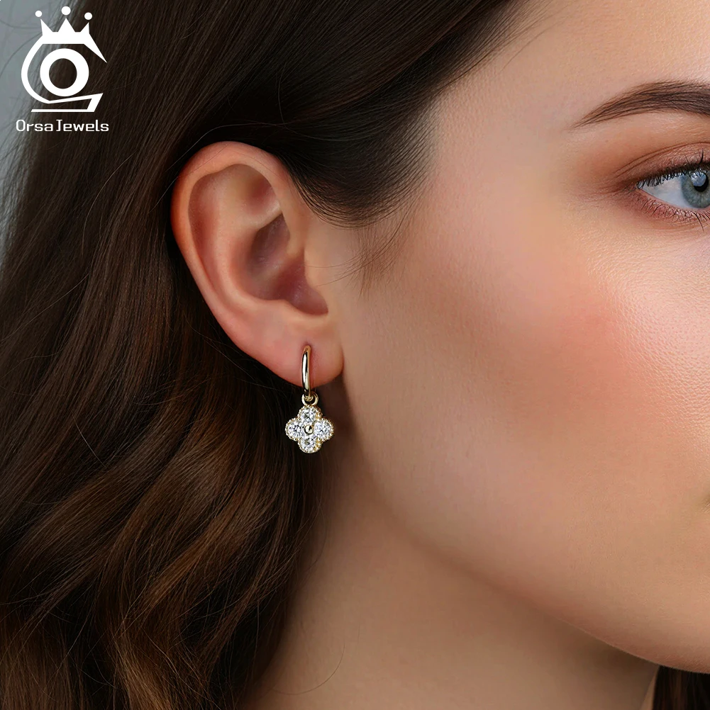 ORSA JEWELS Exquisite 925 Silver Clover Moissanite Earrings for Women Shiny D Color Moissanite Diamand Earring Jewelry MOE18