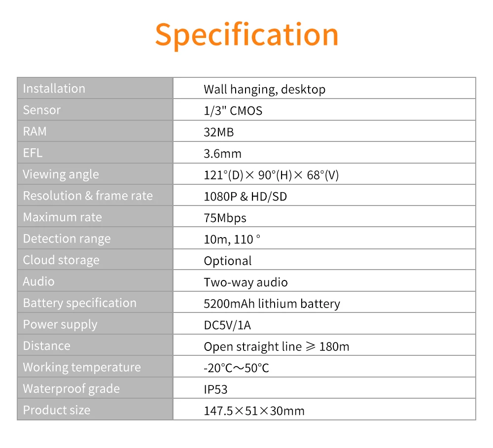 121-degree viewing angle and 1080P pixels, allowing you to see wider and clearer.