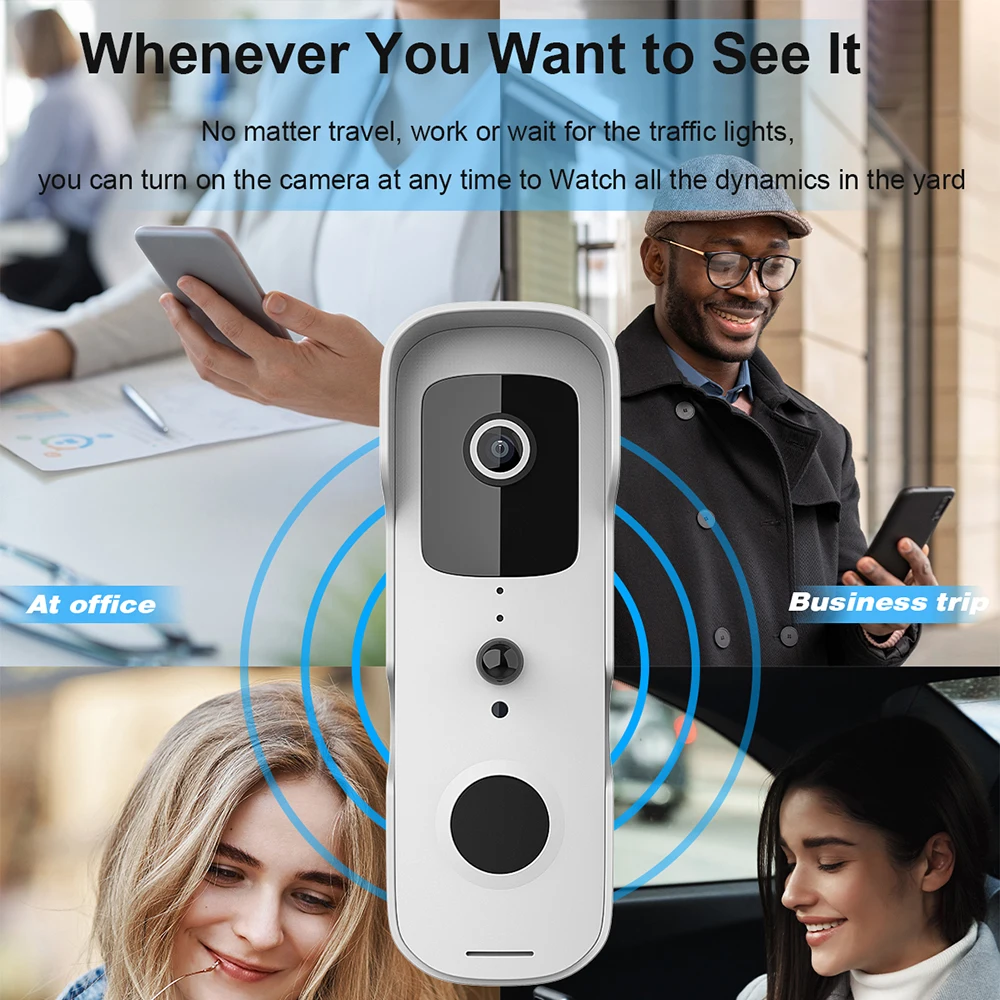 Built-in microphone and speaker allows for real-time 2-way talk and enables you to see, hear and speak with visitors from your mobile phone, tablet, wherever you are, no matter you are engaged in working or jogging in the park, you can keep an eye on your door and remote control it on your APP.