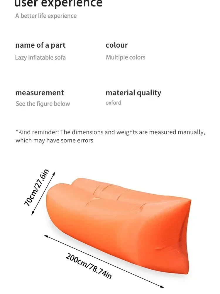 • Portable Design :This lazy inflatable sofa is designed for easy portability, perfect for outdoor activities like camping and beach trips.