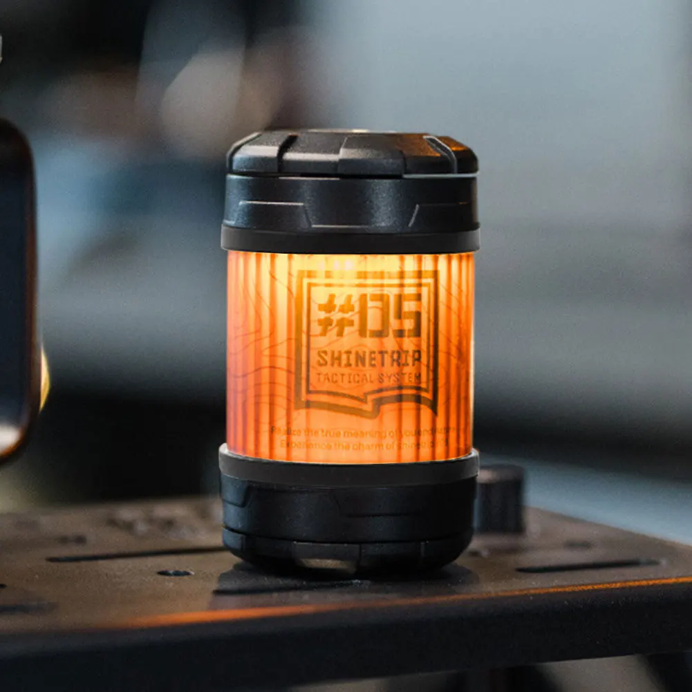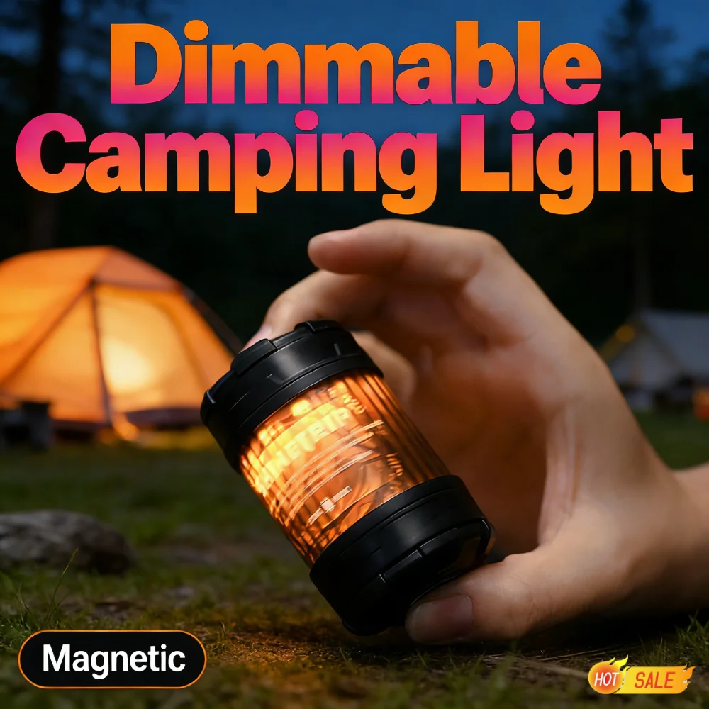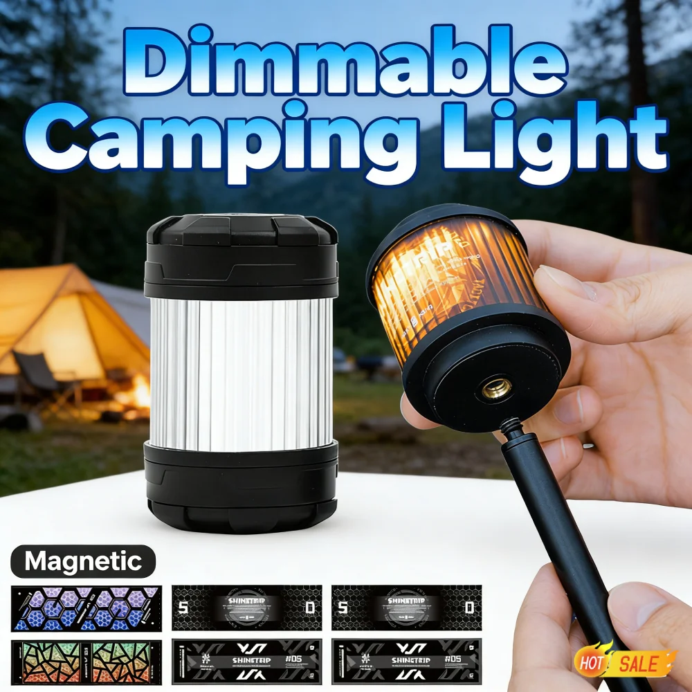 Outdoor Camping Light 4Modes Rotable Camping Lantern Rechargeable Magnetic Atmosphere Lantern for Outdoor Camping Hiking Features: 1.Creative Design: Experience a unique stress-relief experience with our finger-spin outdoor camping light, offering long-lasting rotation and diverse play options. 2.Versatile DIY Options: Featuring a 1/4 thread hole design, this portable tent lamp allows for various DIY configurations to enhance your creative use. 3.Magnetic Base for Flexibility: With a magnetic atmosphere lantern base, enjoy flexible usage, making it suitable for a wide range of applications. 4.Adjustable Brightness & Dual Light Source: This rotable camping lantern offers four adjustable levels and dual warm/cool lighting, catering to different scenarios and needs. 5.Gradient Dimming: The dimmable emergency lamp features a button switch with long press stepless dimming, allowing gradual brightness adjustments for optimal illumination.