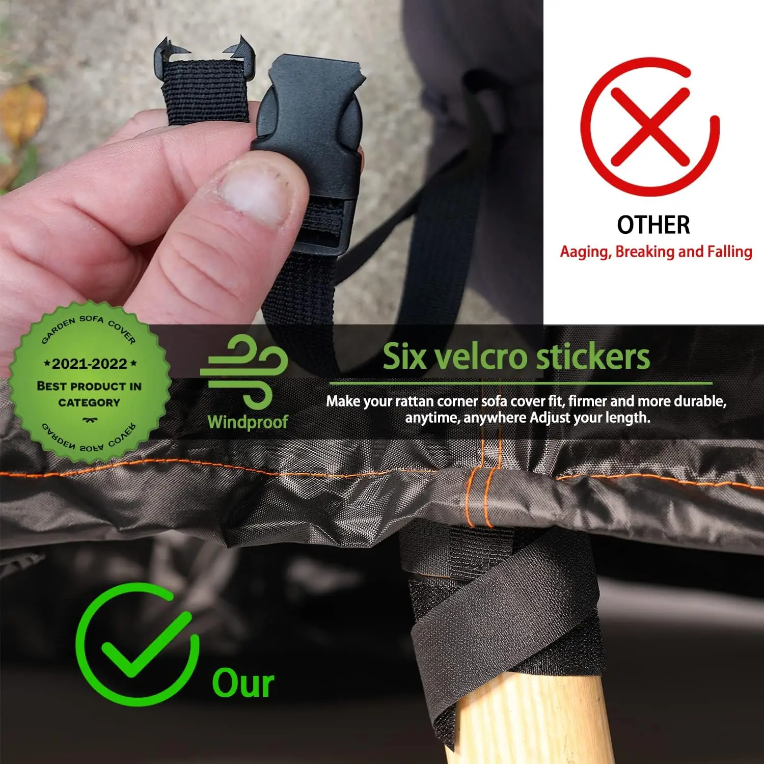 Protect your valuable outdoor furniture from harsh weather conditions with this durable and reliable cover. Designed to fit rectangular patio sets, including sofas, couches, tables, and chairs, it ensures long-lasting protection against rain, sun, dust, and wind. Key Features: – **Advanced Waterproof Technology**: This cover features a nano PU coating and high-temperature sealed waterproof adhesive tape on all stitching seams. It can withstand water pressure up to 15,000pa, keeping your furniture dry even during heavy downpours. – **Enhanced Ventilation System**: Equipped with a second-generation stereo vent design that increases air entry capacity. This maximizes airflow to reduce internal condensation and keep cushions and liners dry, preventing mold and mildew buildup. – **Secure Windproof Design**: Instead of traditional buckles that may age or break easily, this cover uses four velcro straps for secure fastening. Additionally, two side tightening straps allow you to tighten the cover on windy days, ensuring it stays firmly in place without slipping off. – **High-Durability Material**: Made from 100 GSM 420D high-density Oxford fabric, this cover is tear-resistant and less likely to degrade under prolonged sun exposure compared to thicker but less dense fabrics. It has passed rigorous testing to comply with EU standards for climate-friendly performance. – **Easy Fit and Versatility**: Before purchasing, measure your furniture dimensions carefully; this cover is designed for rectangular sets measuring approximately 120 inches long by 90 inches wide by 35 inches high. Its versatile design makes it suitable for various outdoor seating arrangements in gardens or patios. – **Reliable Customer Support**: Enjoy peace of mind with our commitment to quality service. We offer a hassle-free return policy within a specified period if you are not satisfied. For any inquiries or issues, our support team responds promptly within hours to assist you or provide replacements as needed. This outdoor furniture cover combines functionality with durability to extend the life of your patio investments while maintaining aesthetic appeal in black color.