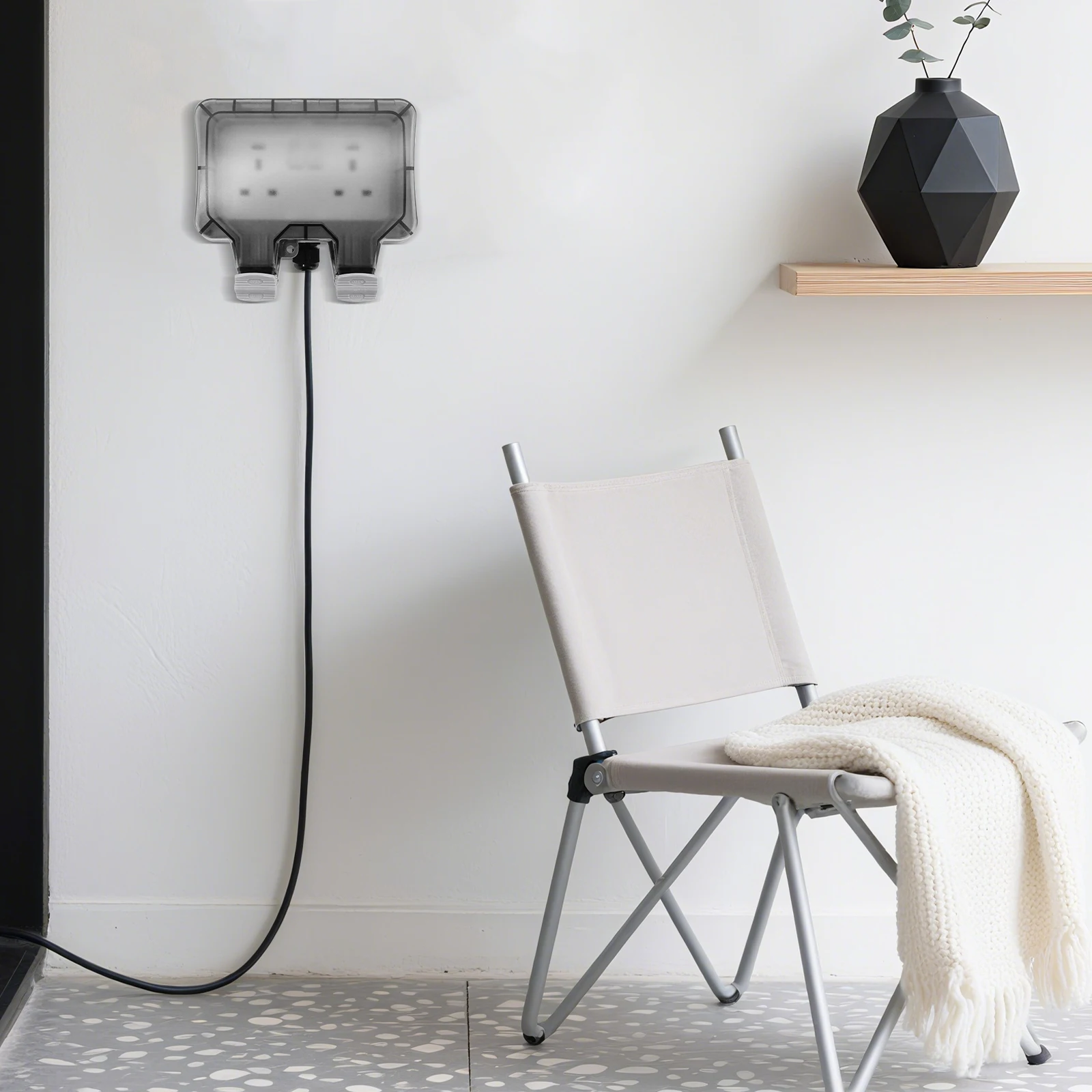 Garden-to-Garage Versatility – Power tools by the shed, fairy lights on the patio, or car vacuums in the driveway. Sleek white design blends anywhere, while lockable covers deter thieves.