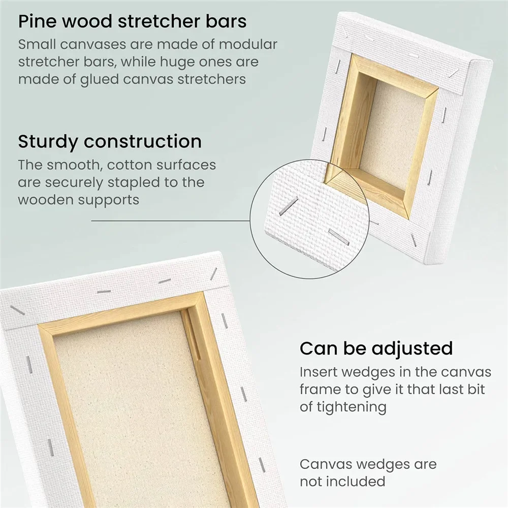 2.Sturdily Constructed: These stretched canvas are stretched and stapled onto pinewood bars that create a firm frame. Our canvas painting supplies offer great quality for a great price.