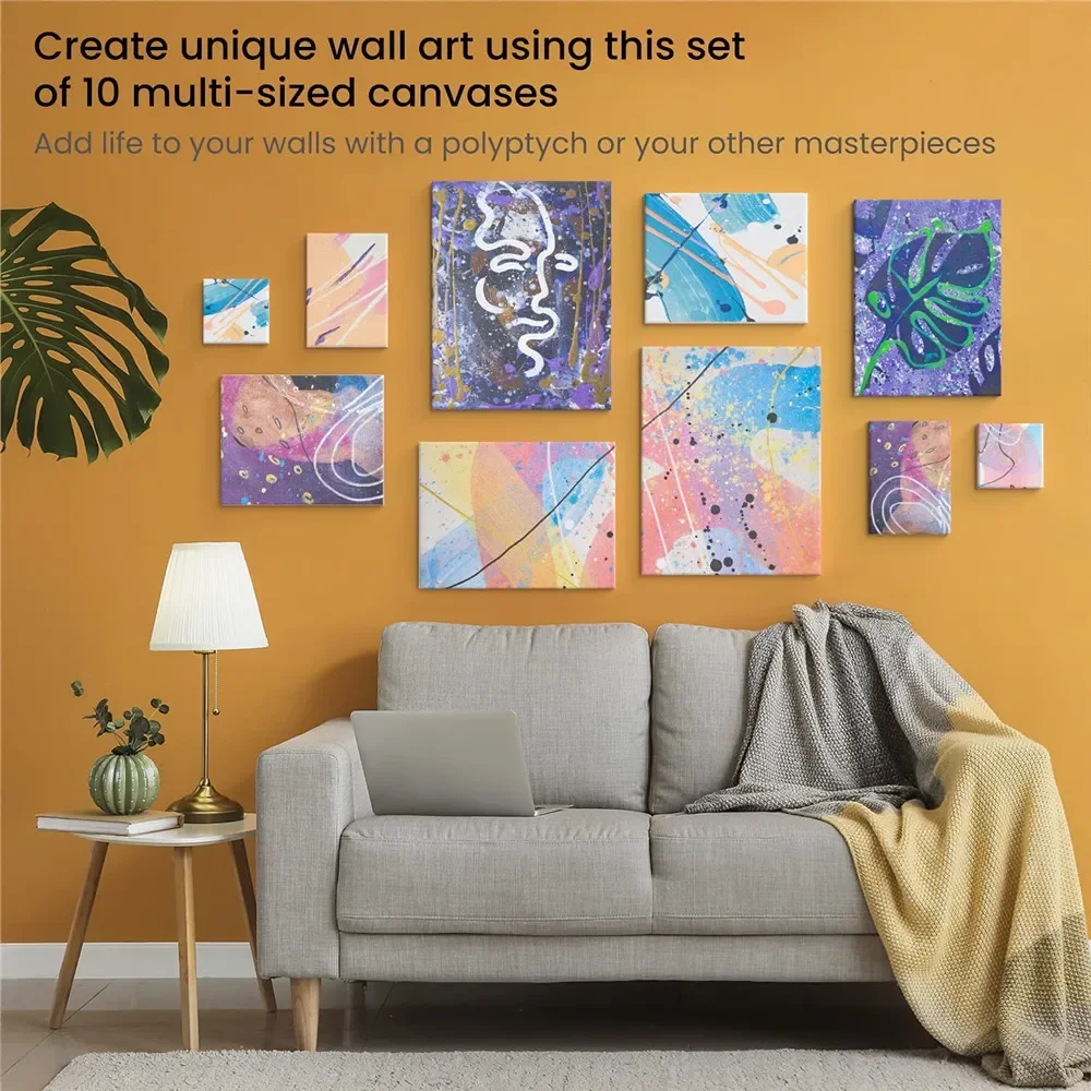 3.Primed & Ready to Go: Each stretched canvas in this set is pre-coated with 8 oz. of acid-free acrylic gesso. So you can start painting and creating as soon as you remove the wrapper.