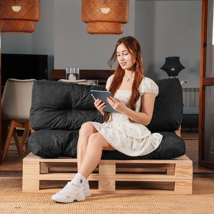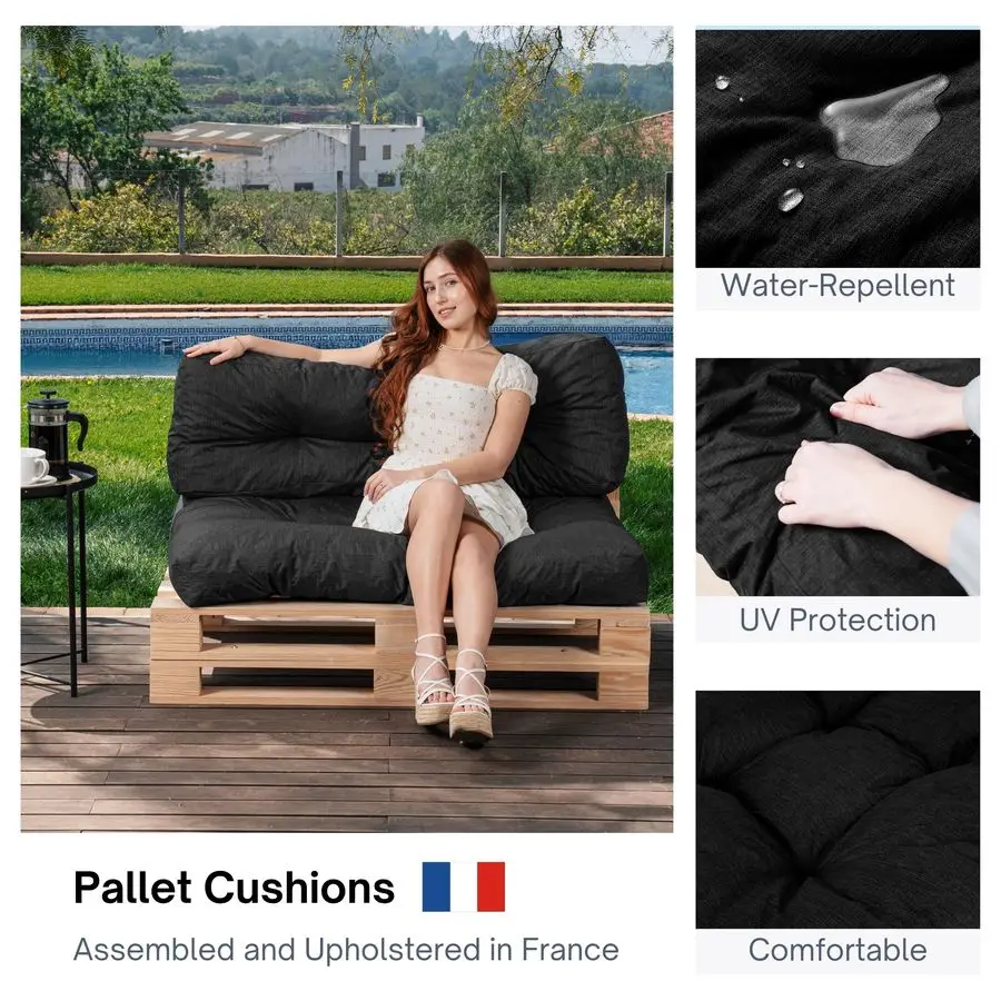COMFORTABLE Completely relax with our outdoor cushions. Our foam filling offers a soft seat for moments of relaxation in the garden. We offer our pallet cushions in sets seat 120×80 cm backrest 120×40 cm or separately. We also offer versatile cushions of 120×60 cm, which can be used as a seat or back, and 60×40 cm cushions, perfect for completing your garden furniture.