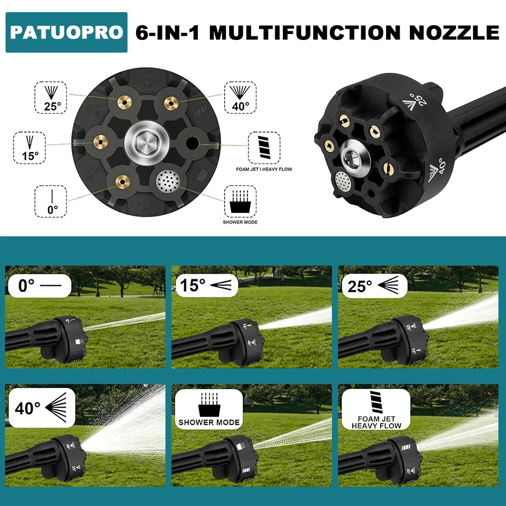 – Adjustable Nozzles for All Tasks: 6 in 1 water gun nozzle,built-in fine filter, highly effective and deep filtering of impurities in the water.