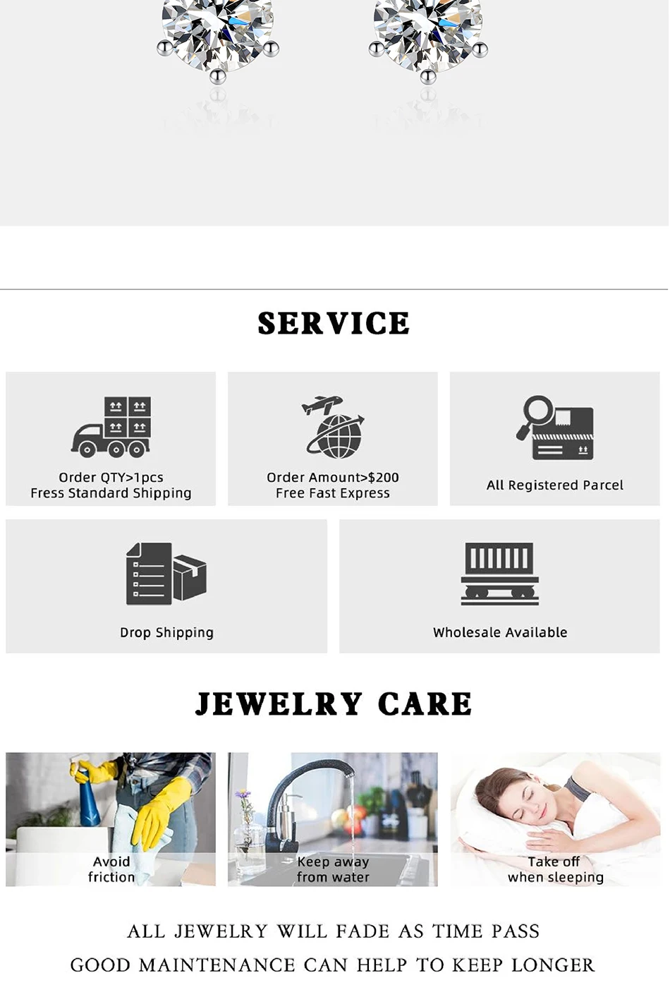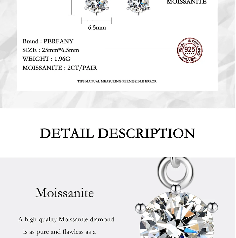 - Moissanite Weight: 1CT/2CT/per Pair