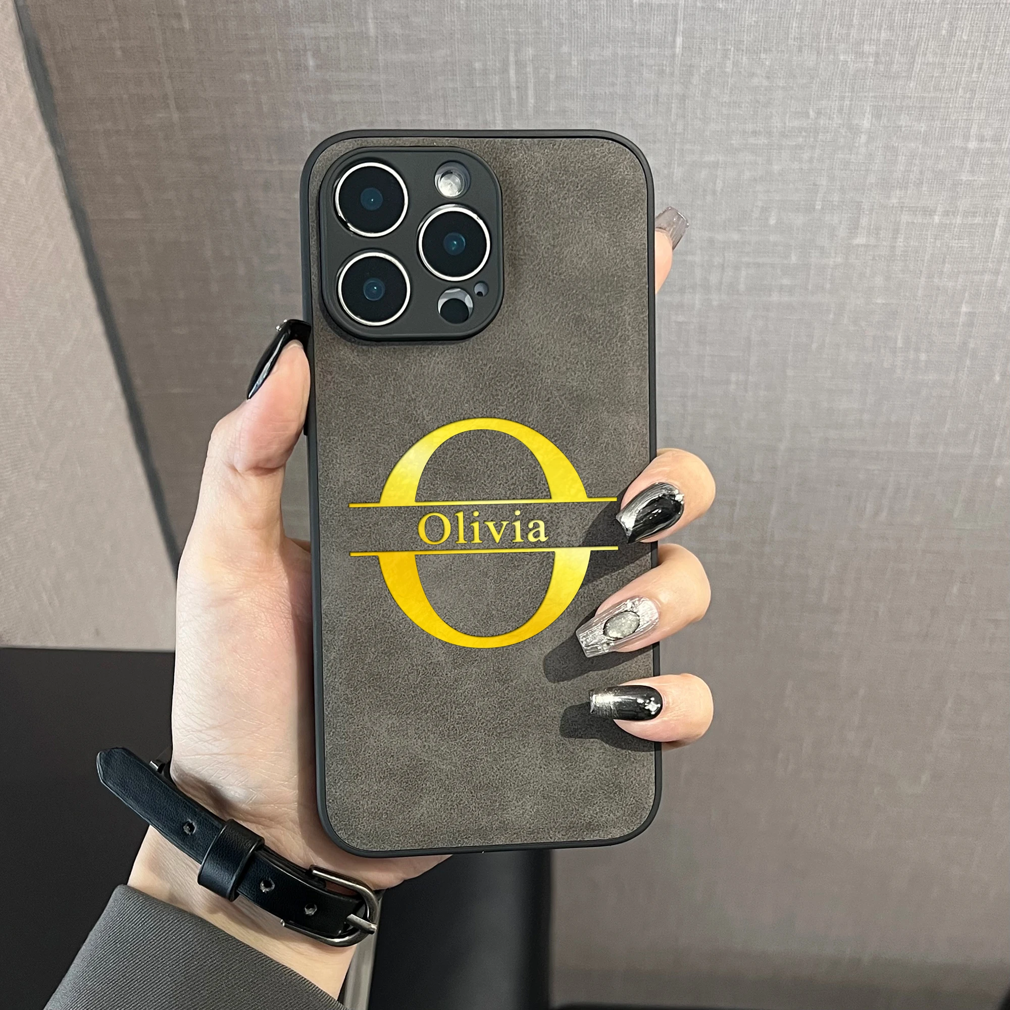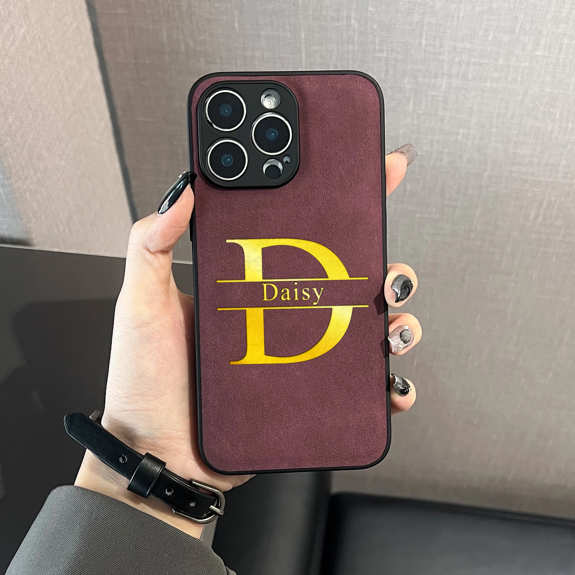 Personalized DIY Name Initials Engraved Letters Phone Case Compatible with for iphone 16 15 14 13 12 11 Pro Max Luxury Korea Soft Suede Faux Leather 3D Golden Hot Stamping Process Shockproof Case