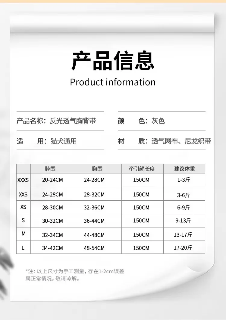 S Pet Chest 36 cm–40 cm,Neck 30 cm–35 cm ,fit for 2.5-4 kg pet