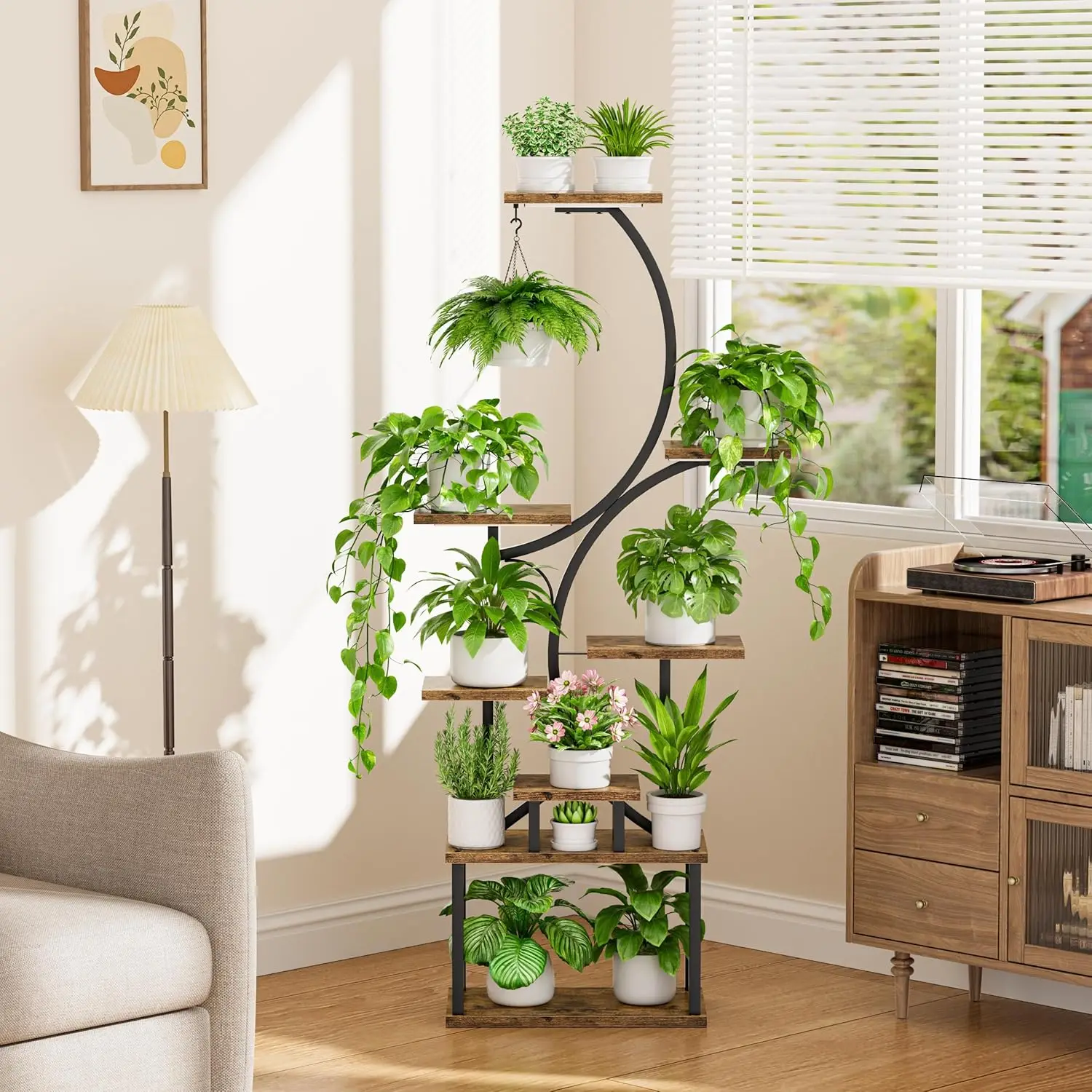 Large Storage Space – 62" heightened flower stand features 8 tiers, 8 pot stands, and 1 hanging hooks, providing ample storage for showcasing plants as much as possible. Please note that placing large plants is not recommended.