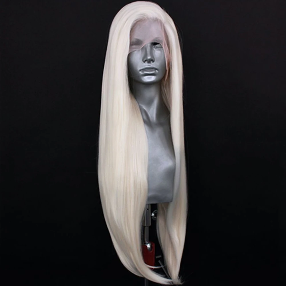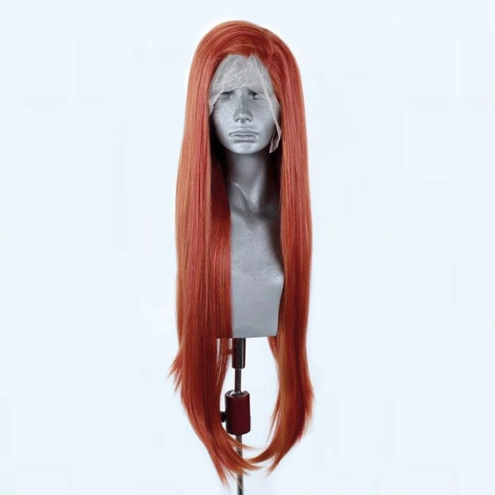 Platinum Blonde Wig Natural Wave Synthetic Lace Front Wigs For Women Long Wave Lace Synthetic Hair Copper Red Cosplay Daily Wear