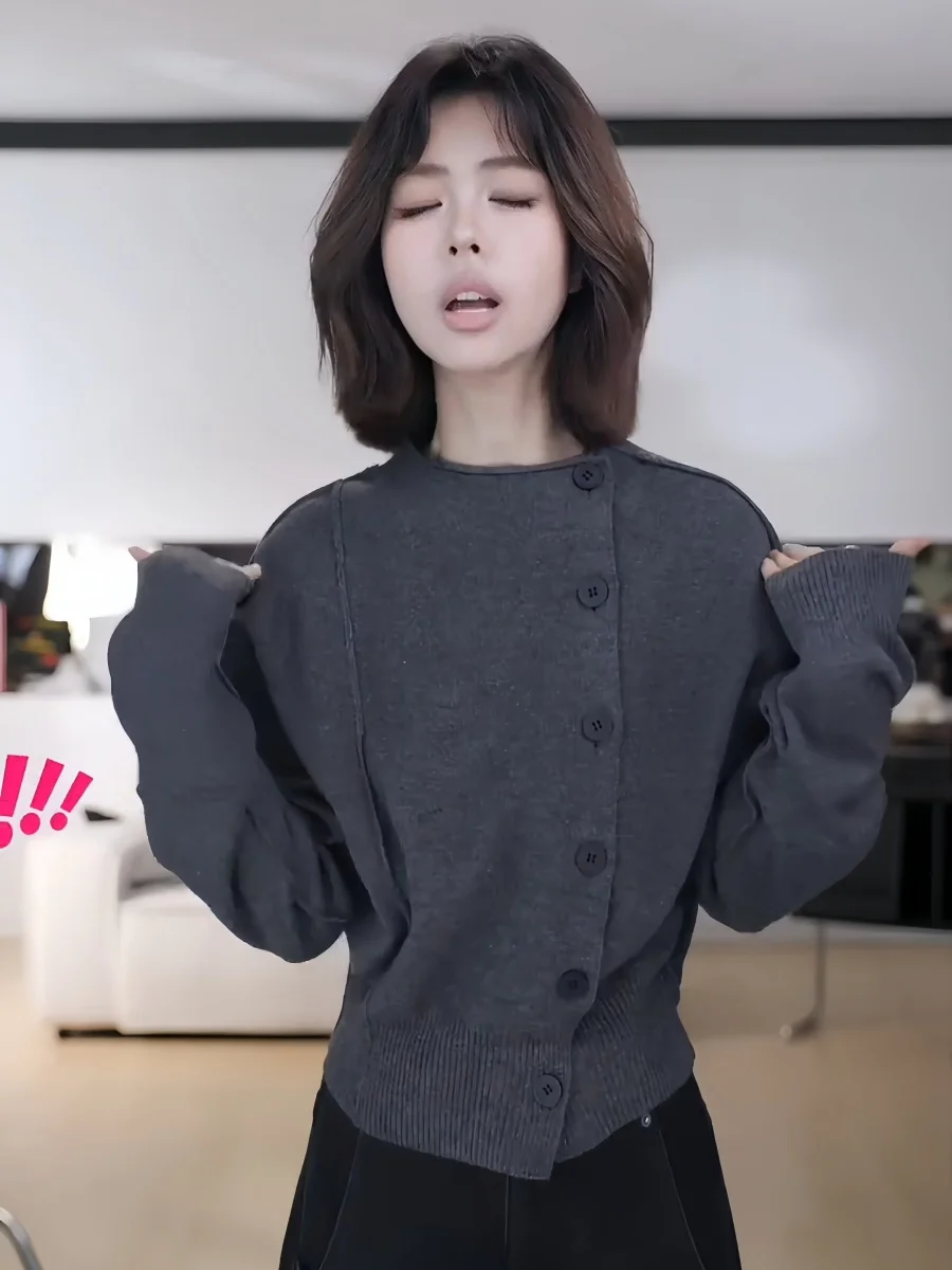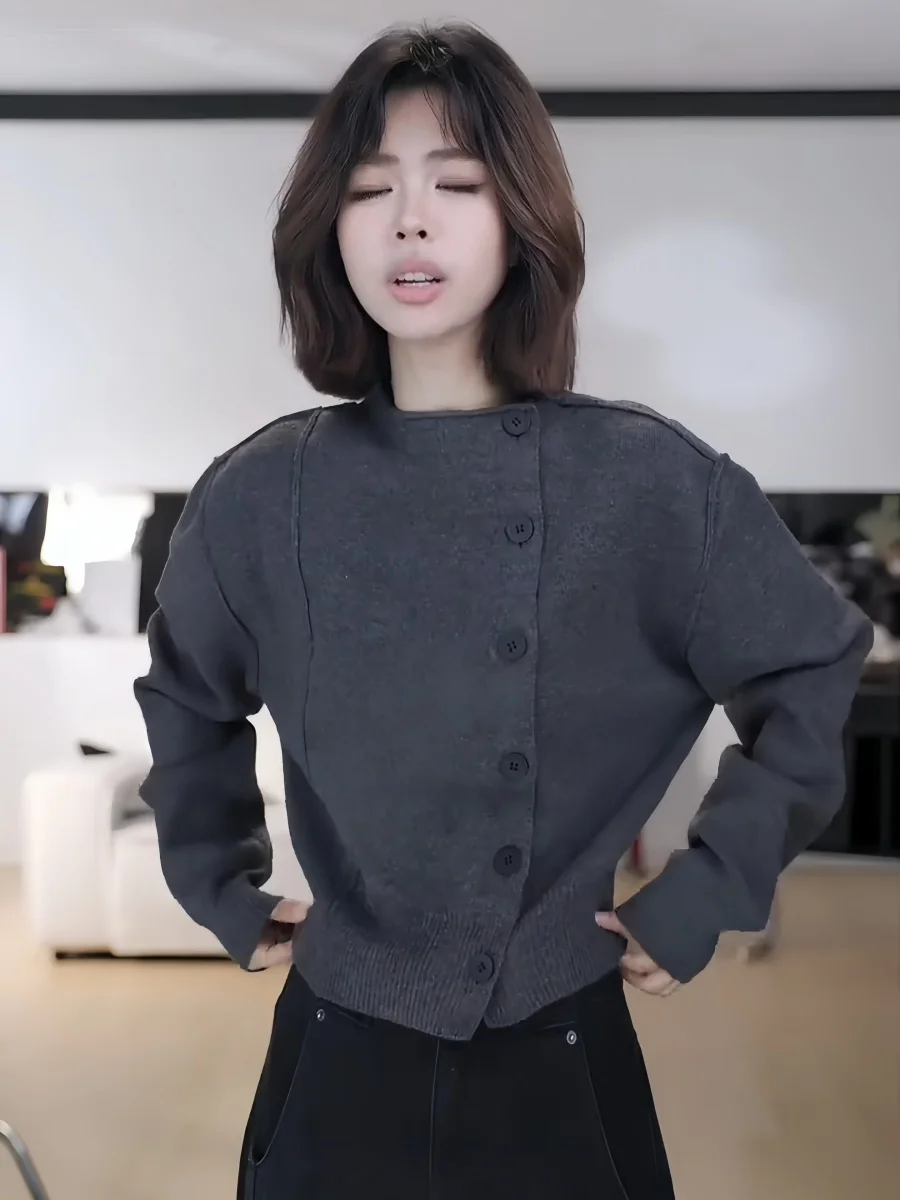 Embrace retro charm with this cozy knit cardigan, perfect for autumn and winter styling.