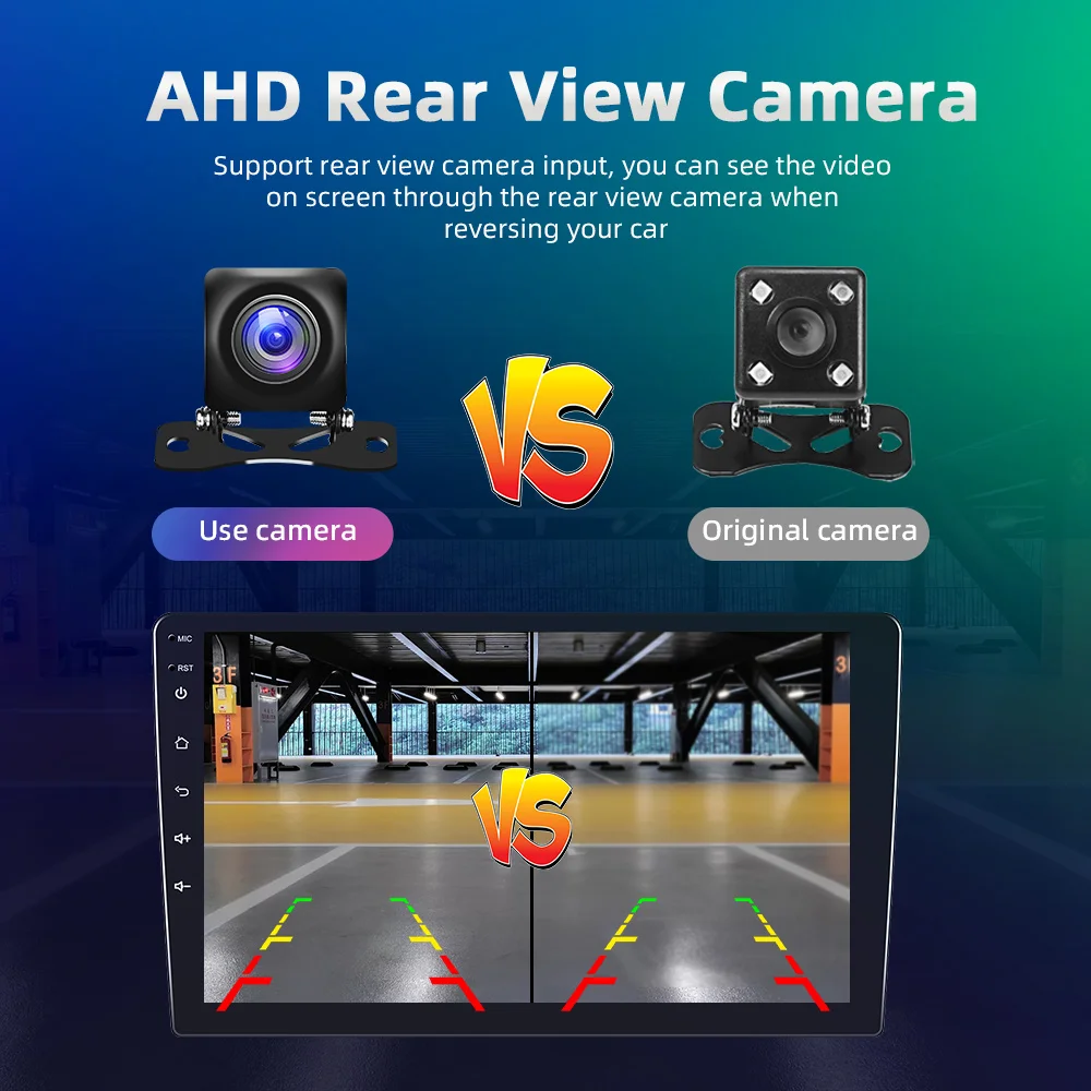 ●Rear camera: support AHD high-definition 720P camera image input,you can switch between CVBS and AHD simply by choosing in the settings(requires optional)