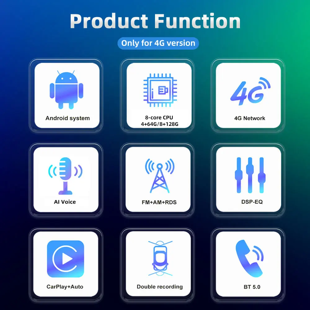 ✬Built-in WIFI & 4GYou can use WIFI to browse website, get online navigation watch video and download Apps