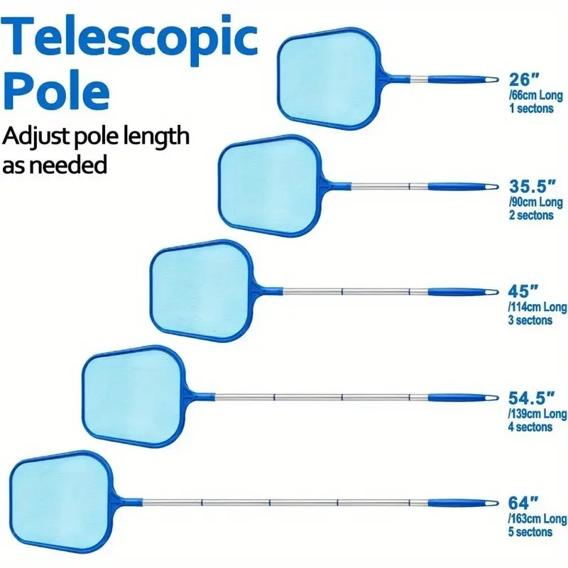 Multi-purpose Pool Net: The length of the Pool net can be adjusted freely, and the connection mode of the rod is simple, which can be widely used in swimming pools, fountain pools, baths, fish ponds, fish tanks