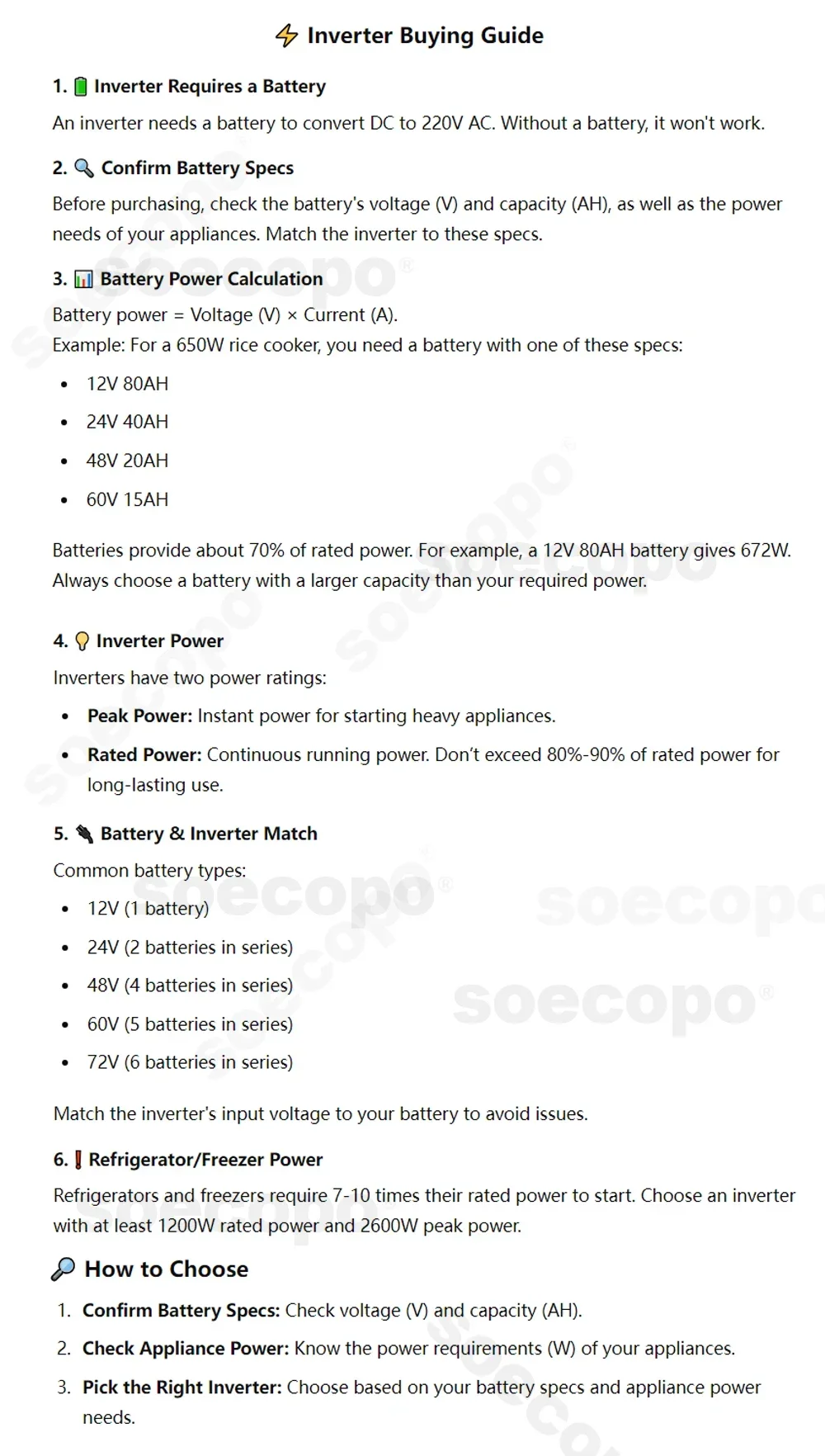 🌬️ Cooling Tips: Ensure 10cm clearance around the inverter. Reduce runtime in extreme heat to prevent overheating.