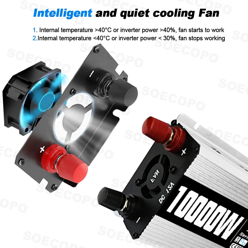Portable 10000W Inverter 12V/24V/48V DC to 220V AC with Universal Outlet for Solar/RV/Home Backup System with USB Port & CE