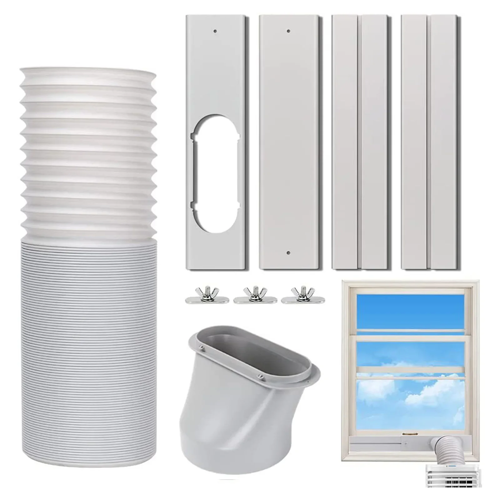 Air Conditioner Window Baffle Kit: Mobile Air Conditioning Exhaust Hose Kit Air Conditioner Exhaust Hose Vent Kit: Portable AC Window Vent Pipe Kit Type: Air Conditioner Parts Application: Home Model Number: Air Conditioner Window Baffle Kit Material: Plastic Exhaust pipe size: Length: 1.5 meters/59.05in, 2 meters/78.74in, diameter: 13cm/5.11in, 15cm/5.9in Baffle Size: About 43x10cm/16.93×3.94in Connector diameter: 13cm/15cm Style (optional): A: 1 x 1.5m Diameter 13cm Exhaust Hose B: 1 x 1.5m Diameter 15cm Exhaust Hose C: 1 x 2m Diameter 13cm Exhaust Hose D: 1 x 2m Diameter 15cm Exhaust Hose E: 3 x Baffles+2 x Screws F: 4 x Baffles+3 x Screws G: 3 x Baffles+2 x Screws+1 x 13cm Connector H: 3 x Baffles+2 x Screws+1 x 15cm Connector I: 4 x Baffles+3 x Screws+1 x 13cm Connector J: 4 x Baffles+3 x Screws+1 x 15cm Connector K: 3 x Baffles+2 x Screws+1 x 13cm Connector+1 x 1.5m Exhaust Hose L: 3 x Baffles+2 x Screws+1 x 15cm Connector+1 x 1.5m Exhaust Hose M: 4 x Baffles+3 x Screws+1 x 13cm Connector+1 x 1.5m Exhaust Hose N: 4 x Baffles+3 x Screws+1 x 15cm Connector+1 x 1.5m Exhaust Hose Note: ![]() 1 x Air Conditioner Window Baffle Kit