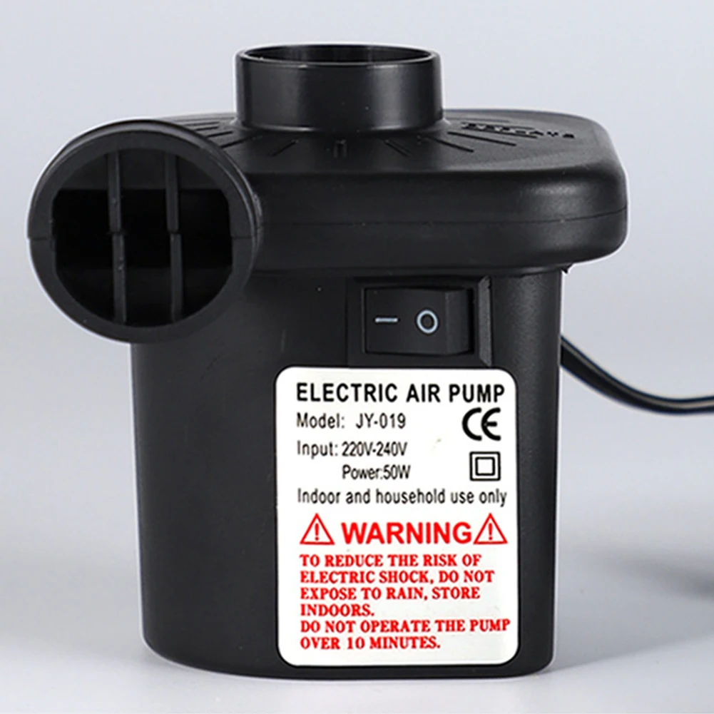 Electric Air Pump with 3 Nozzles Air Mattress Pump Quick-Fill Inflator/Deflator Pumps for Inflatables Air Mattress Bed Couch Swim Ring Features: 1.Efficient Inflation: With an electric air pump providing a maximum flow rate of 400 liters per minute, the high-pressure design ensures efficient inflation and deflation, saving you time and effort. 2.User-Friendly Operation: Simply connect the portable air pump to the inflation port and press the switch for quick air mattress pump inflation. For deflation, align the pump interface with the suction hole at the top and press the switch for easy air release. 3.Compact Design: The compact size of this inflator/deflator pump makes it easy to use, store, transport, and carry, adding convenience to your lifestyle. 4.Portable Convenience: This small, portable air pump is easy to carry anywhere, from outdoor camping to indoor use, without taking up luggage or storage space. 5.Versatile Application: Ideal for inflating air mattresses, baby pools, rafts, sofas, inflatable beds, boats, and swim rings. Not suitable for inflating high-pressure products such as tires, basketballs, or balloons. Specification:
