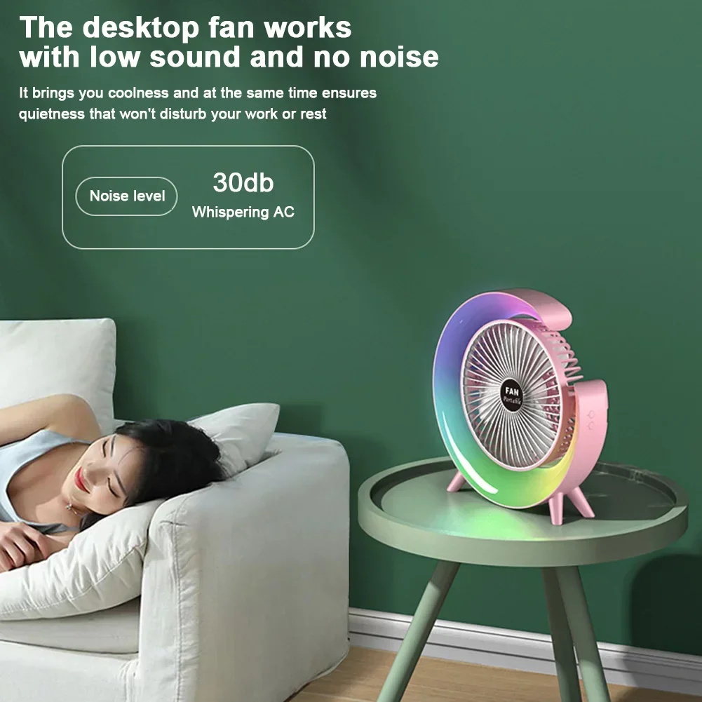 5.Multi-functional and Ambiance-enhancing: Our desk fan goes beyond just cooling. It also serves as a small night light, offering five unique lighting modes – white, green, blue, breathing, and colorful lights. Create a delightful atmosphere while staying cool and comfortable.