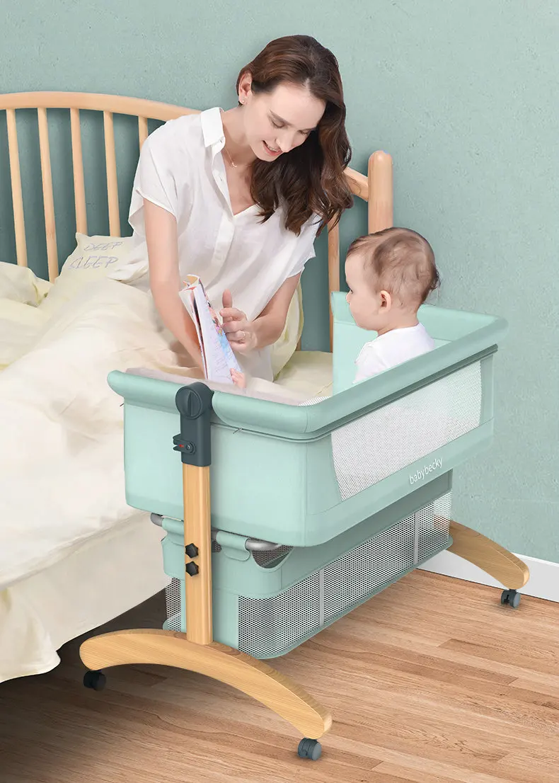 Our baby bedside sleeper is made of comfortable and durable materials. It can put your baby safely by the bed, making it easier for you to take care of your baby even in the middle of the night . Keep the baby's comfort and closeness with the parents. It can improve your sleep, and convenient for you to take care of your baby at any time. This baby bed can be raised unilaterally to prevent the baby from spilling milk. You can raise one side while feeding the baby, so that the baby can drink more comfortably. It can also be matched with the height of sofa or bed, to satisfy many environments where you and your baby get along.