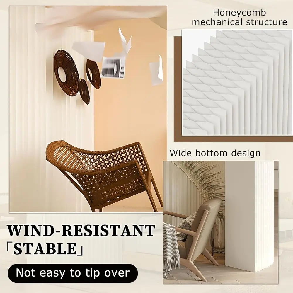 This room divider panel is designed with a reinforced core and fabric, ensuring durability for various settings like homes, offices, or event venues. It features a wind-resistant base for stable positioning and scratch-proof edges to prevent wear, offering 40% better stability than standard dividers.