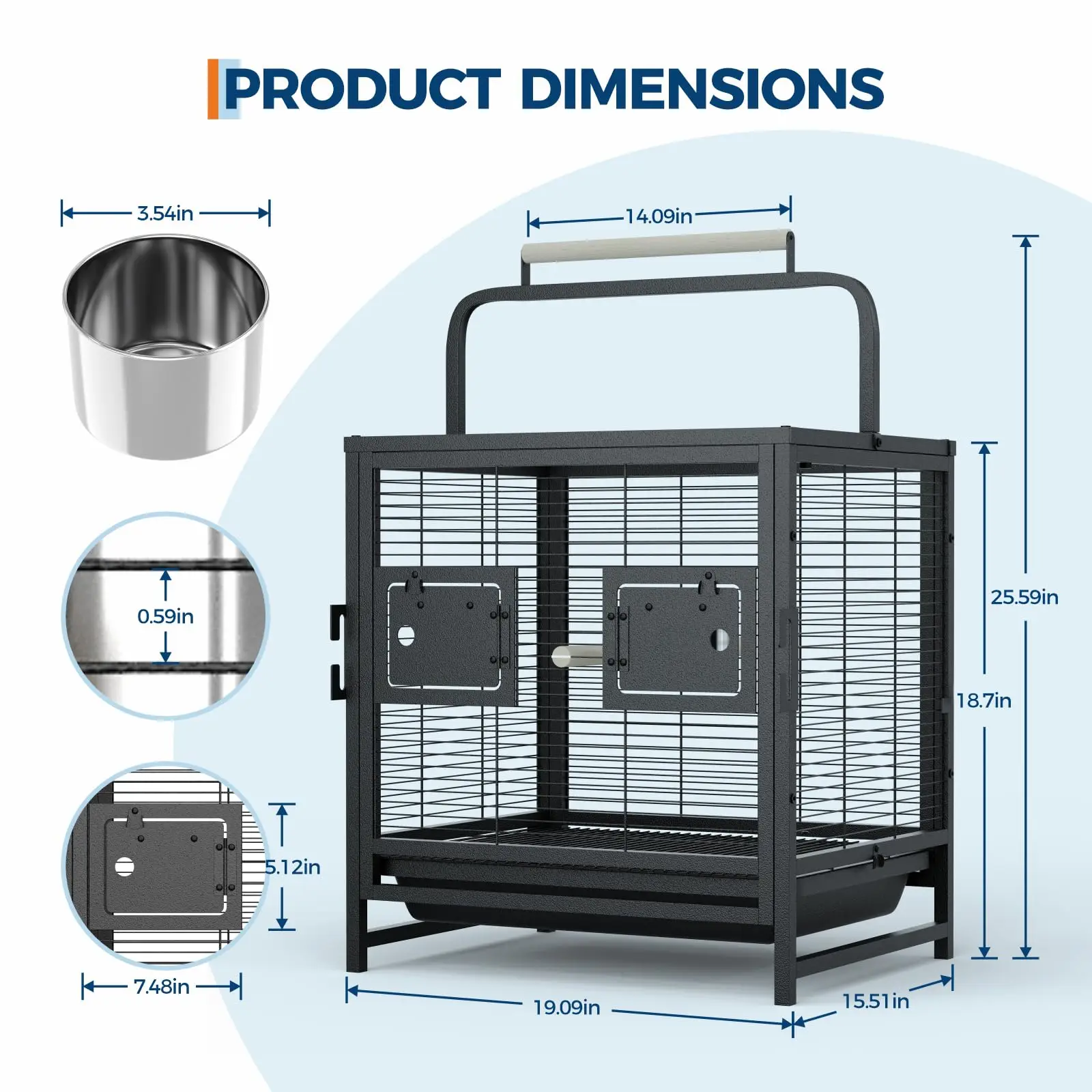 — Spacious 19×15.5in design offers ample room for small birds, while remaining lightweight and easy to carry on trips or to the vet.
