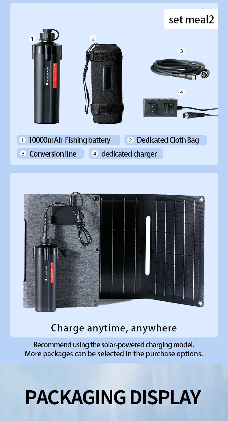 Power display package 2: 10000mAh+60cm clip cable+conversion bracket+40cm adapter cable+charger+cloth bag+waterproof cover