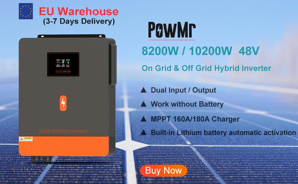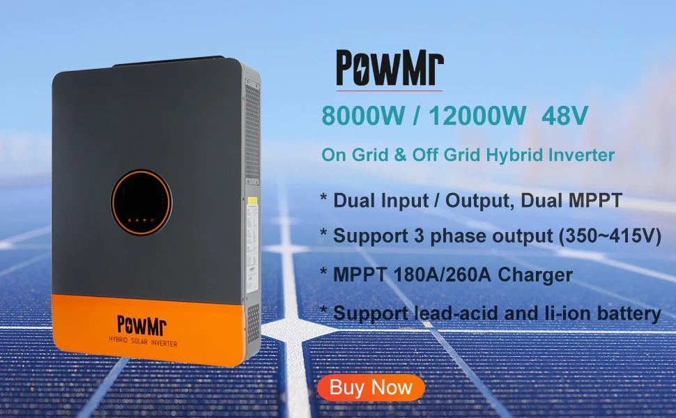 PowMr 6.2KW 4.2KW Hybrid Solar Inverter On Grid Pure Sine Wave Inverter 24V 48V 230V Dual Output with MPPT 120A Solar Charger