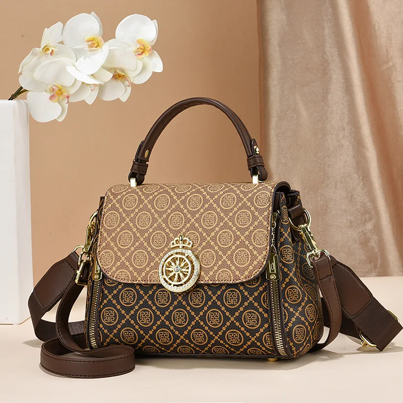 It’s a really nice bag, but im not pleased with color. It needs something to break up all the brown and the gold accents isn’t enough. Very nice, i just wish id gotten a different color! Does nicely come with 2 long straps!