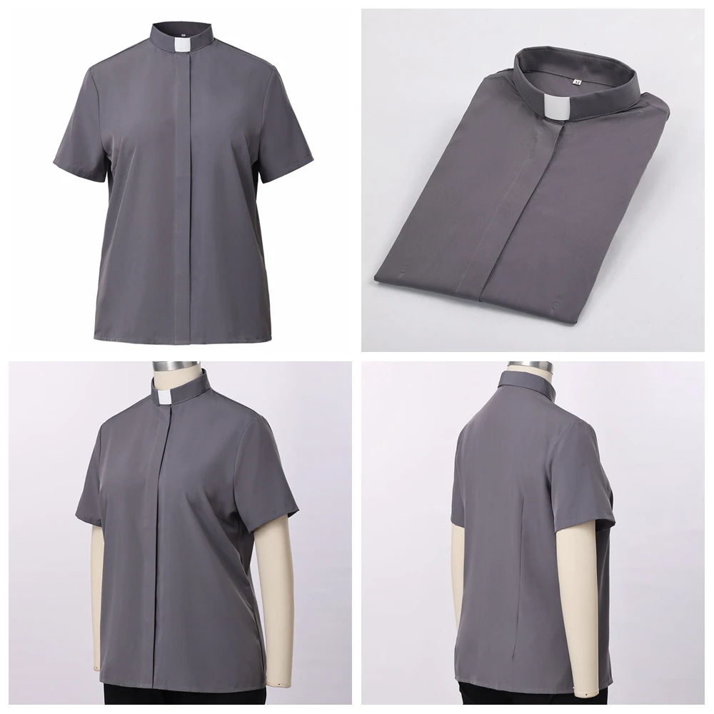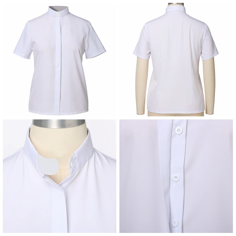 Suitable for Women Female Adult Casual Blouse, Party Festival Blouse Top, Priest Costumes. Long Sleeve / Short Sleeve Blouses, White/Black Robe for Clergy Style