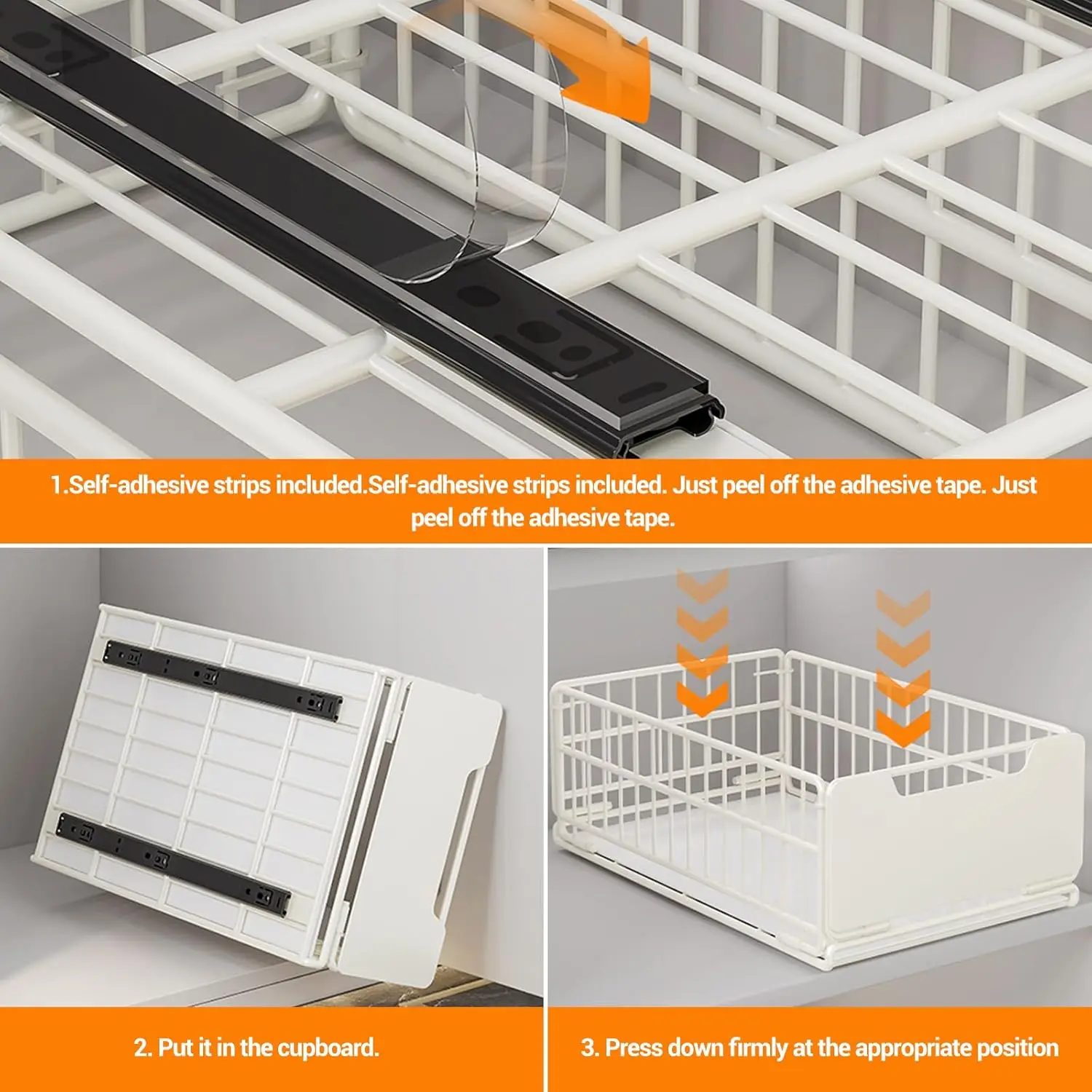 【Easy Installation】No drilling or tools required—our cabinet organiser features the included adhesive tape for simple peel-and-stick setup, ensuring quick installation and excellent stability in minutes. Perfect for renters or anyone seeking a hassle-free solution.