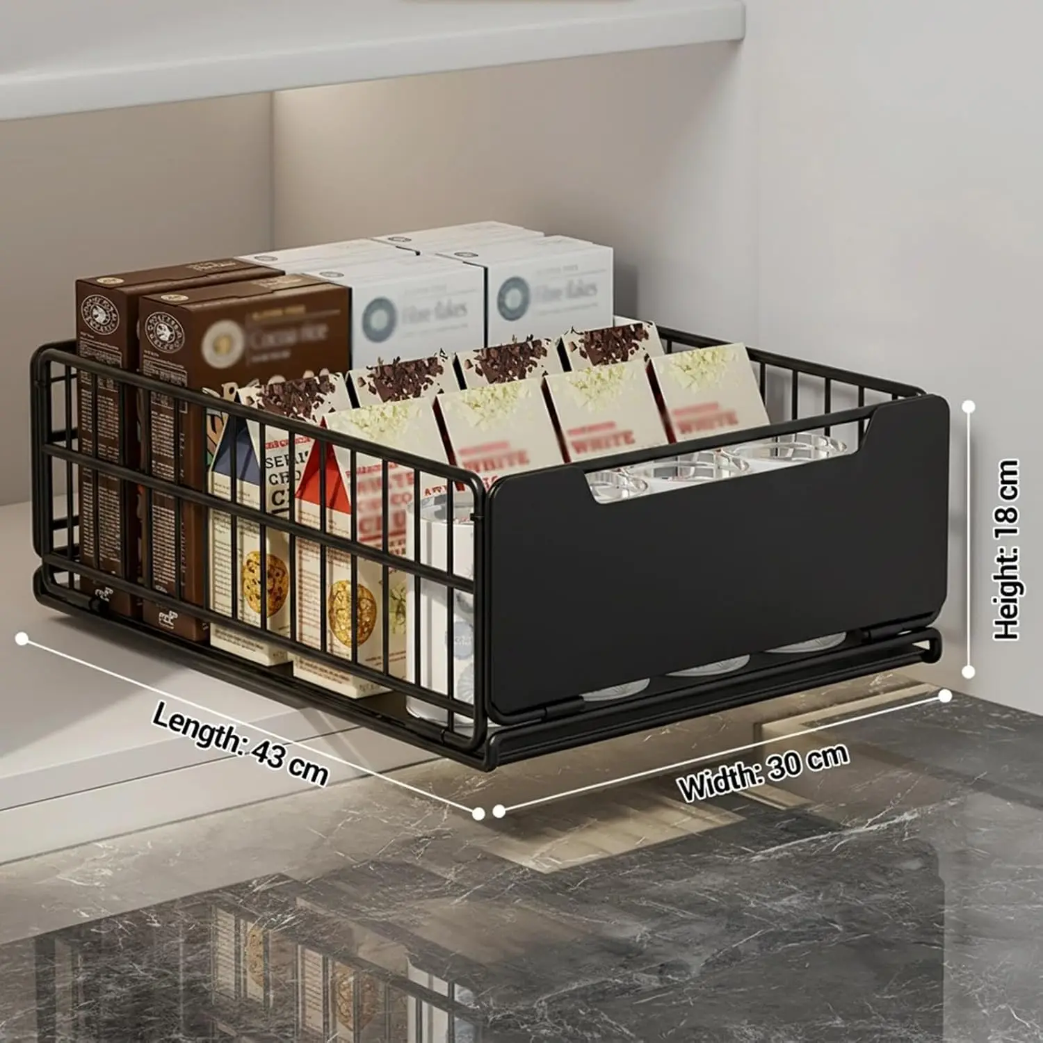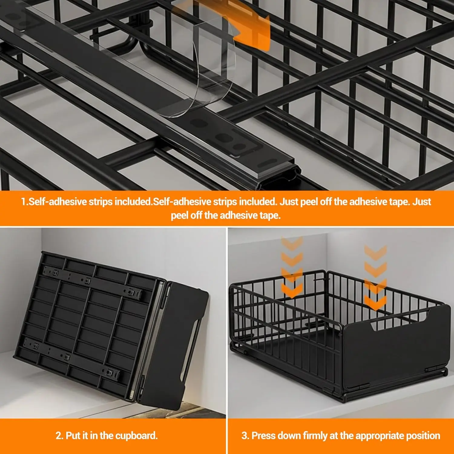 【Strong Load-bearing Capacity】Crafted from premium carbon steel, this pull-out drawer boasts a robust structure with high weight capacity, effortlessly supporting and organising loose items like pots, spices, or toiletries without bending or deformation.