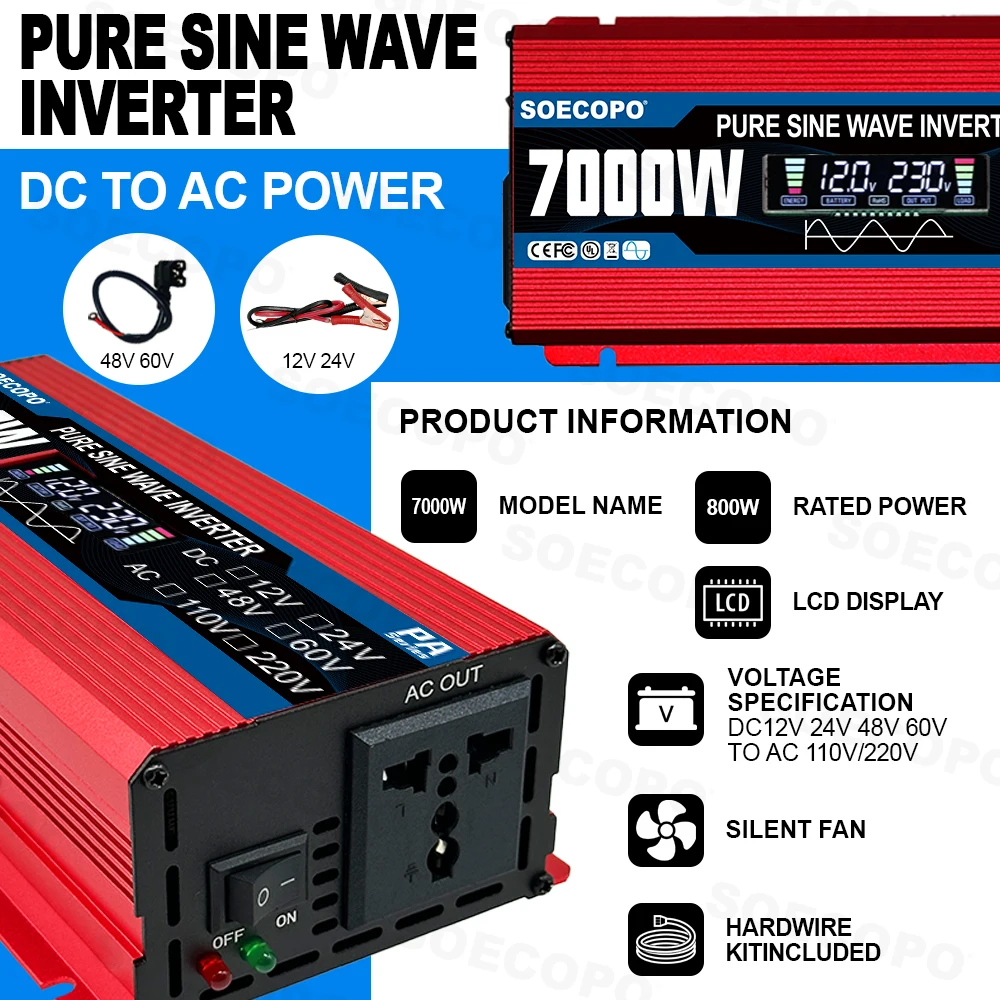 🔥 7000W Pure Sine Wave Dual Voltage Inverter 🔥