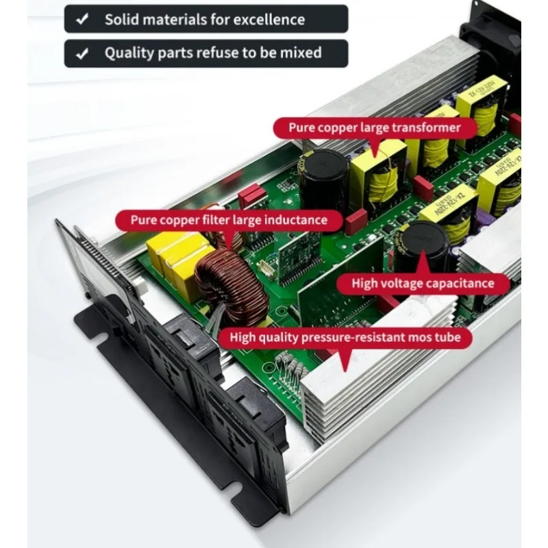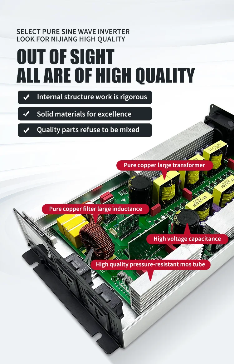 2: Pure sine wave, intelligent filtering, no interference with electrical appliances, protect electrical appliances. High conversion efficiency (up to 95%).