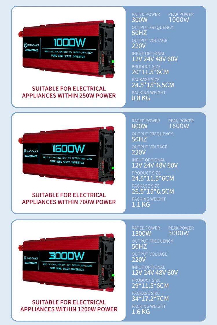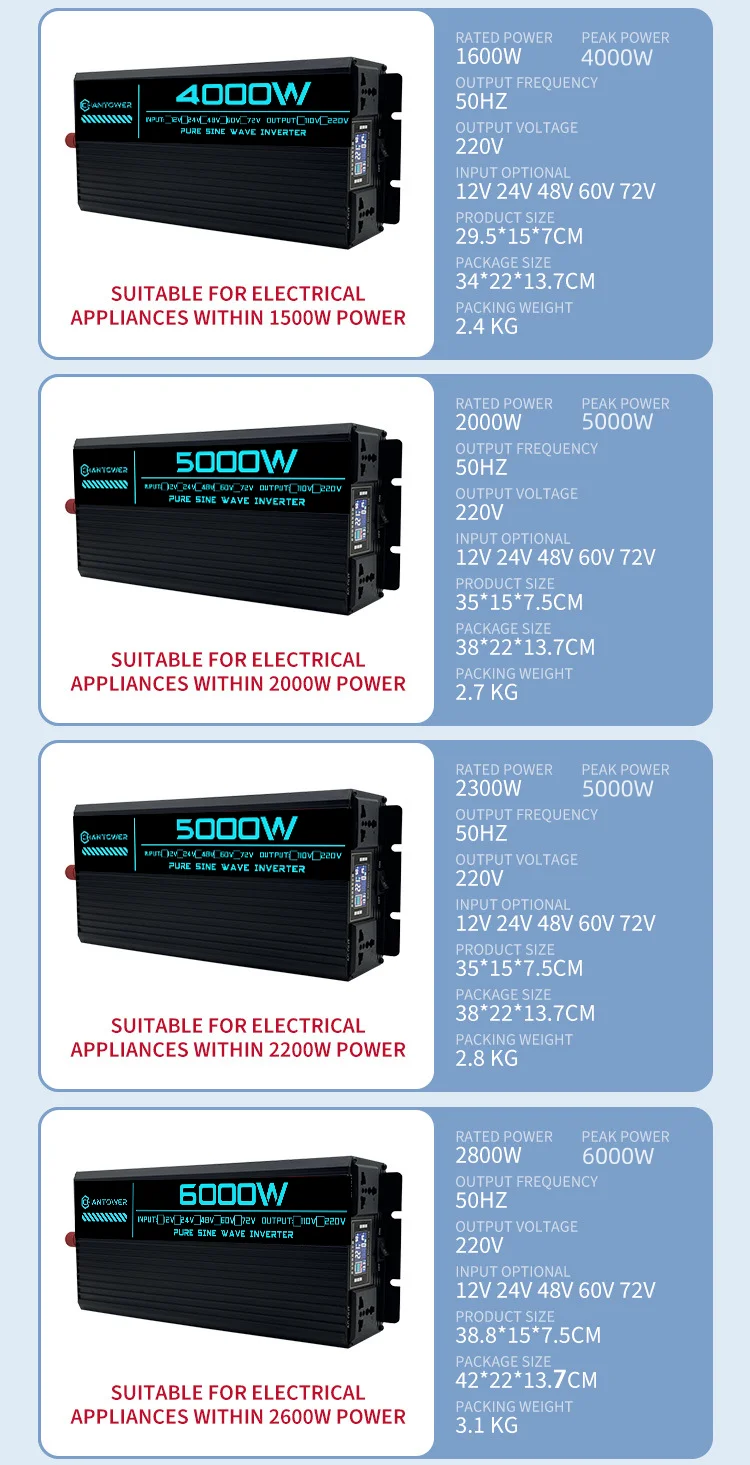 Dear customers, this inverter is available in various power ratings and models (1000W – 6000W). Please choose the correct model carefully. Thank you!
