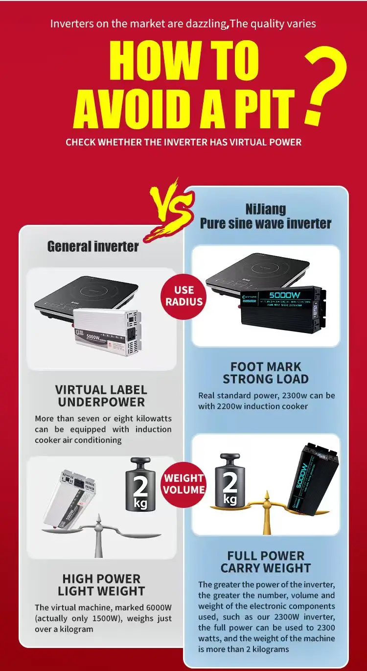 Inverter 5000W, continuous power is 2200W, peak power is 5000W.