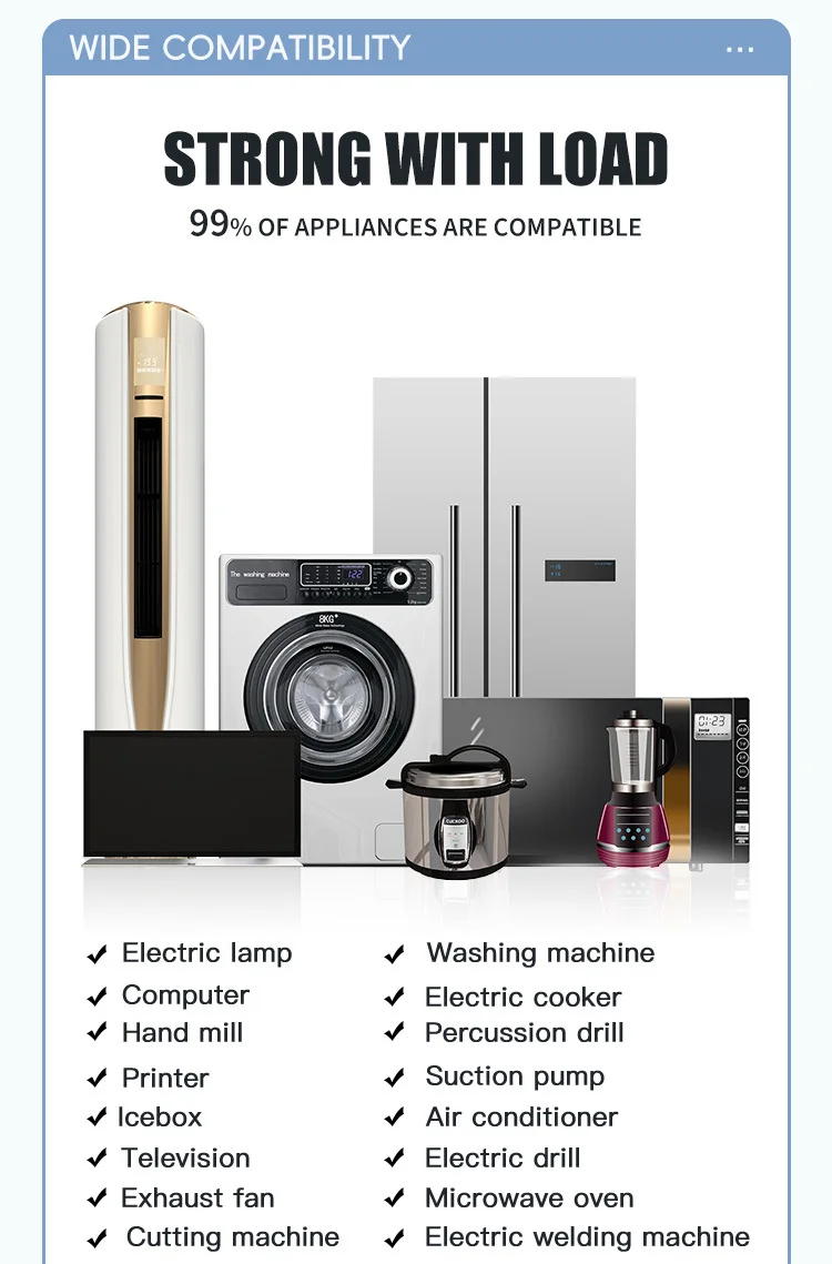 ✅ Pure sine wave output – Safe and stable for sensitive devices such as laptops, TVs, refrigerators, and tools.