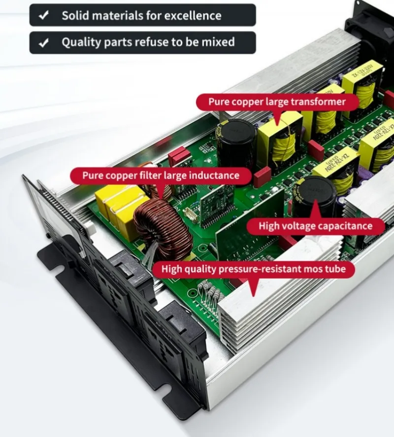 2: Pure sine wave, intelligent filtering, no interference with electrical appliances, protect electrical appliances. High conversion efficiency (up to 95%).