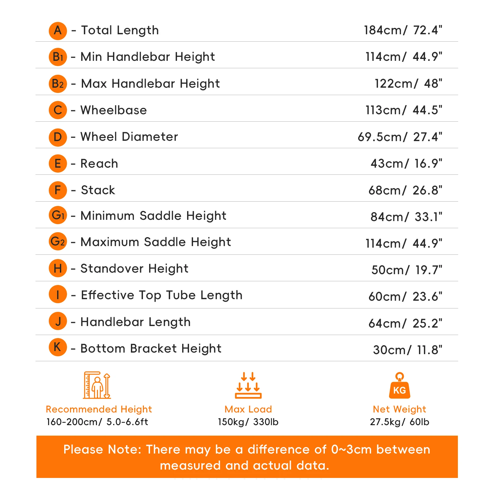 - Recommended Rider Height: 160-200cm (5'3"-6'7")
