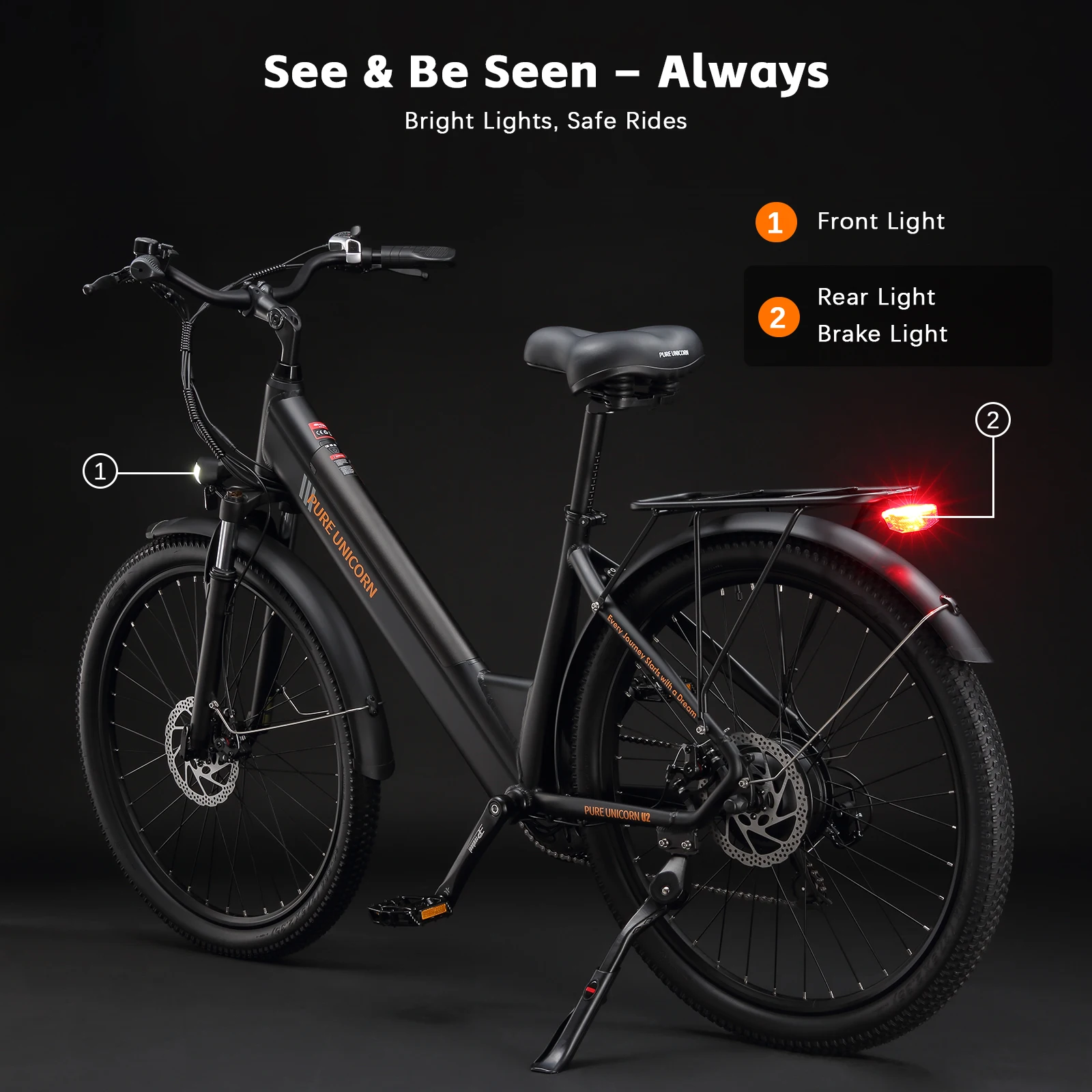 5. Fully Equipped: Front/rear lights, brake light, and full fenders for safe, clean riding in any weather.