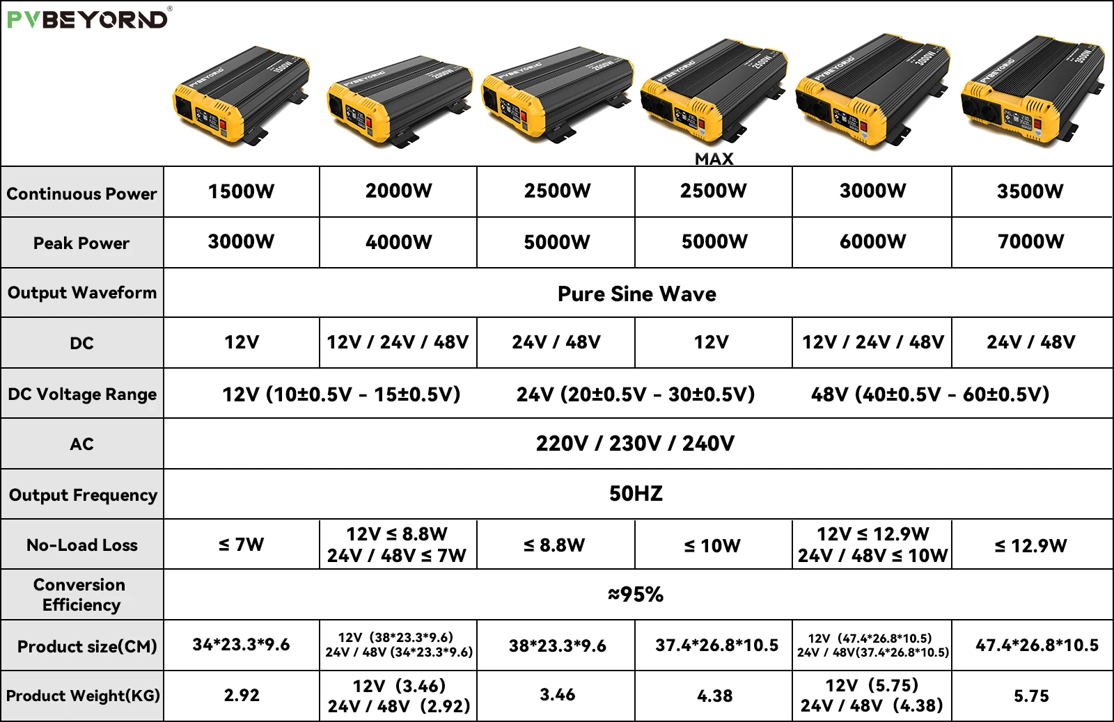 Continuous Power: 1500W / 2000W / 2500W / 3000W / 3500W