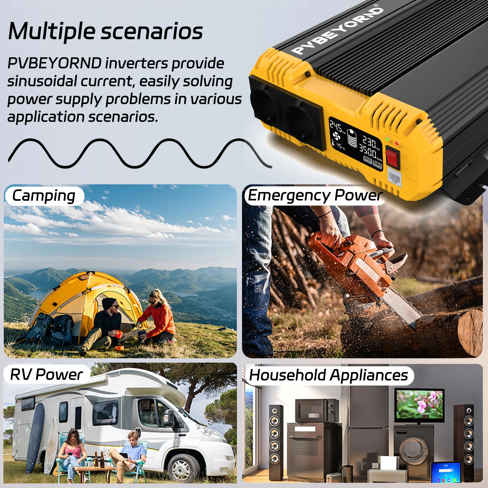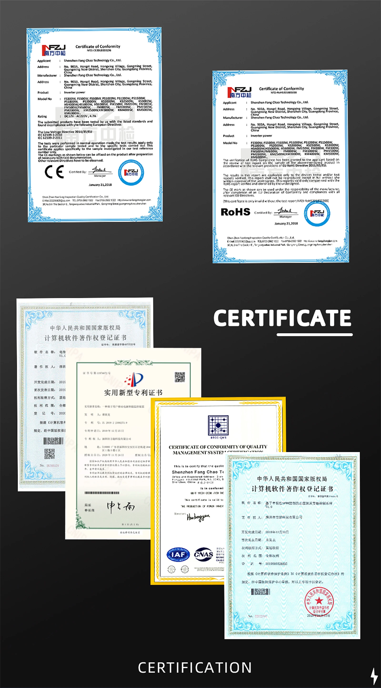 1. Pure sine wave, intelligent filtering, does not interfere with electrical appliances, and protects electrical appliances. The conversion efficiency is high (up to 95%), and the power consumption of the product itself is low, which can greatly extend the battery life.