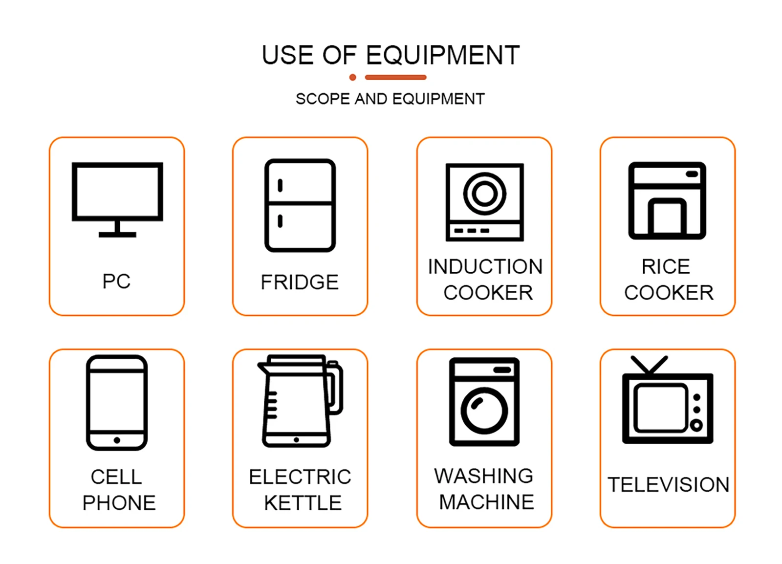 3. Almost all electrical appliances can be used, including TV/LED lights/LCD monitors, especially inductive load appliances such as refrigerators, freezers, and induction cookers.