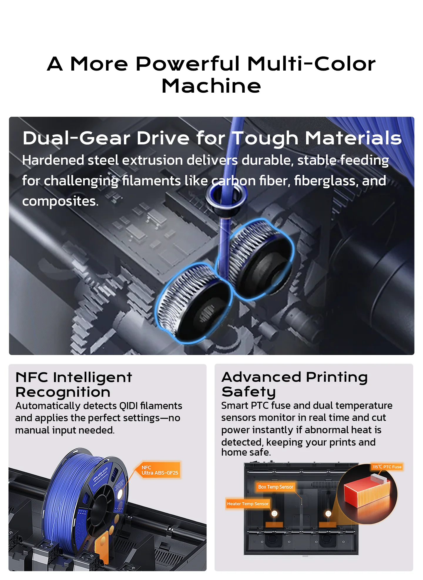 [Unlock Multi-Color & Multi-Material] Q2 with QIDI BOX enables up to 16-color multi-material 3D printing with dry-while-print technology, keeping filaments dry for stable extrusion and smooth surfaces. Supports PLA, ABS, PETG, TPU, PA, PC and carbon/glass-fiber composites for strong, precise prototypes and vibrant models.